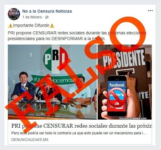El PRI sí ha propuesto censurar redes sociales. Pero, para ser precisos, no lo hizo en este proceso electoral, sino hace cuatro años y la propuesta ya fue rechazada en el Senado. La precisión es importante, porque una noticia falsa circula en la red y su título es: “PRI propone CENSURAR redes sociales durante las próximas elecciones presidenciales para no DESINFORMAR a la nación”.La nota cuenta con más de seis mil interacciones en Facebook, donde se pueden leer comentarios como “lo hacen para ocultar un posible fraude” o “están violando nuestro derecho a la libre información”.La nota se refiere a la propuesta de Ley de Telecomunicaciones que envió el Presidente Enrique Peña Nieto al Senado en marzo de 2014, en la que se incluían dos artículos (el 145 y 197) que mencionaban posibles bloqueos de acceso a Internet.La propuesta provocó el rechazo de la oposición y de varias organizaciones de la sociedad civil, que consideraron que ambos artículos podrían ser utilizados para censurar la información y limitar la libertad de expresiónSin embargo, las comisiones del Senado eliminaron estos puntos controversiales antes incluso de que la propuesta fuera debatida en la Cámara de Diputados, y finalmente la legislación no los incluyó.Luis Fernando García, director de la Red en Defensa de los Derechos Digitales R3D, explicó que, en cualquier caso, la iniciativa de Peña Nieto “no se refería a la censura de redes durante la época electoral, sino que abría la puerta a que autoridades pudieran requerirle a las empresas bloquear contenidos en Internet”.El experto recordó que la versión final de la ley “ya no incluye la redacción que podía suscitar esas interpretaciones, e incluso viene una prohibición de bloquear las comunicaciones”. De hecho, la Constitución mexicana también prohíbe cualquier tipo de censura en su artículo séptimo.María del Carmen Nava, politóloga y directora de la organización Visión Legislativa, señaló que en el país no hay ninguna normativa que castigue la desinformación, como también indica el titular de la noticia falsa.“Ha habido algunos intentos de regular los contenidos en Internet, pero es un debate que incluso a nivel internacional se ha evitado porque es muy delicado qué se va a aceptar y qué no”, advierte Nava, para quien la censura en Internet o los filtros en redes sociales son indicativos de regímenes menos democráticos.