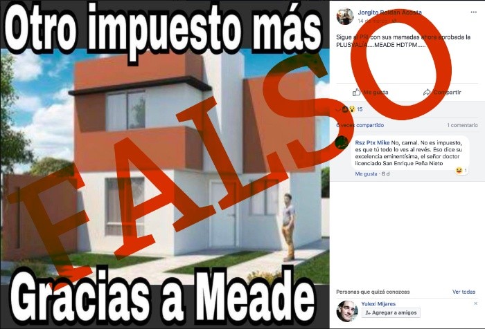 Una cadena compartida en redes sociales asegura que, como titular de la Secretaría de Hacienda y Crédito Público (SHCP), el ahora precandidato del PRI, José Antonio Meade, impulsó una ley para cobrar un impuesto a la plusvalía de la vivienda.La información es falsa: Meade no propuso ninguna ley, porque los secretarios no tienen capacidad legislativa, ni durante su mandato en Hacienda se aprobó un impuesto para gravar la plusvalía.En ninguno de los paquetes económicos que entregó Meade como titular de Hacienda -el de 2017 y de 2018- se incluyó alguna propuesta sobre gravar la plusvalía o un cambio en impuestos.Vinculado al tema, solo en diciembre de 2016, la Asamblea Legislativa del Distrito Federal (ALDF) aprobó una nueva Ley de Vivienda, cuyo artículo 94 facultaba al gobierno (local) a “implementar mecanismos para la captación de plusvalías generadas por las acciones urbanísticas”. La polémica que se desató alrededor del término obligó a la ALDF a aprobar un dictamen con observaciones para eliminar el término plusvalía de la Ley. Pero en este proceso nada tuvo que ver el extitular de Hacienda.La información falsa sobre la plusvalía y Meade también pasa por alto que como secretario de Hacienda no podría presentar iniciativas de ley.“El único que puede proponer iniciativas de ley dentro del Ejecutivo es el presidente. Adjudicarle esa facultad a un secretario es inconstitucional, no sería factible”, señala María del Carmen Nava, politóloga y directora de Visión Legislativa.El artículo 71 de la Constitución establece quiénes pueden presentar iniciativas de ley: diputados federales, senadores, ciudadanos con un cierto número de firmas y el poder ejecutivo a través de su presidente, que es el único que puede hacer propuestas de ese tipo. “Ningún miembro de gabinete puede hacerlo de forma abierta”, agrega Nava.Además, el artículo 115 de la Constitución establece que las cuotas y tarifas aplicables a impuestos son competencias de los estados, no de la federación. "Las leyes federales no limitarán la facultad de los Estados para establecer las contribuciones", indica la fracción IV.Este es un fragmento de la cadena que se está distribuyendo y es falsa: