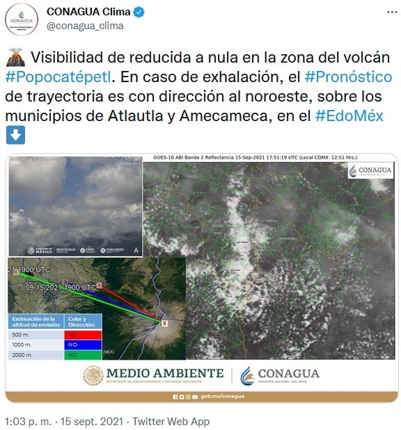 El volcán Popocatépetl registró una explosión a las 10:15 horas que produjo una columna de 2.2 kilómetros de altura, la más alta de las últimas horas y en un día ha presentado cinco explosiones, informó el Centro Nacional de Prevención de Desastres (Cenapred).La coordinación de Protección Civil del Estado de México reportó caída de ceniza en los municipios mexiquenses de Amecameca, Ayapango, Cocotitlán, Ozumba, Temamatla, Tenango del Aire y Tlalmanalco.En las últimas 24 horas los sistemas de monitoreo del volcán Popocatépetl han detectado 89 exhalaciones, probablemente acompañadas de gases volcánicos y ligeras cantidades de ceniza. La más importante se registró hoy a las 10:15 horas que produjo una columna de 2 mil 200 metros, dio a conocer el Cenapred.También se contabilizaron 110 minutos de tremor de baja a mediana amplitud. Adicionalmente, se registraron cinco explosiones, dos moderadas ayer a las 18:11 y 23:50 horas y tres pequeñas, dos ayer a las 18:18 y 20:55, y una hoy a las 06:36 horas.A las 11: 00 horas se observó a la montaña con una pequeña emisión de vapor de agua con dirección noroeste.Los gobiernos locales de la región suroriente del Estado de México han hecho recorridos por las comunidades para recomendar a los residentes que no realicen actividades al aire libre, que se tapen ojos, nariz y boca si van a salir a la intemperie, así como cerrar ventanas y puertas y mantenerse en su casa el mayor tiempo posible.El Cenapred exhorta a la población a no acercarse al volcán y sobre todo al cráter, por el peligro que implica la caída de fragmentos balísticos y en caso de lluvias fuertes, alejarse de los fondos de barrancas por el peligro de flujos de lodo y escombro.El Semáforo de Alerta Volcánica del Popocatépetl se encuentra en Amarillo Fase 2.Si te interesó esta noticia y quieres saber más, entonces descarga y descubre INFORMAPlus, la aplicación digital de EL INFORMADOR, en donde tenemos contenidos exclusivos, seleccionados por nuestros editores, para darles una experiencia más completa a los lectores.Descarga la aplicación y pruébala GRATIS por treinta días.Para iOS: https://apple.co/35jaVgb Para Android: https://bit.ly/3gwVSEVSi eres suscriptor de EL INFORMADOR tu acceso está incluido, solicítalo al 33 3678-7777OA