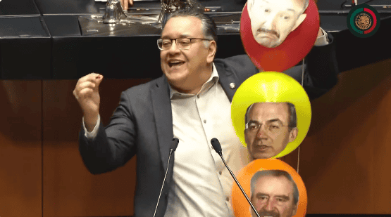 En la Comisión Permanente del Congreso de la Unión se debatió el tema Xóchitl Gálvez y los contratos de sus empresas, y en medio de una guerra de acusaciones y descalificaciones, un senador de Morena captó la atención de todos por sus acciones con una botarga de dinosaurio y globos.Gabriel Hernández exhibió la imitación de dinosaurio verde y, sin mencionar a Xóchitl Gálvez, dijo que éste recibió contratos por mil 472 millones de pesos. Además, agregó: "Benditas las mujeres que venden gelatinas o tamalitos para sacar adelante a sus familias… benditas los 17 millones de mujeres que reciben los programas de Bienestar, benditas las ingenieras y científicas, pero maldita sea la corrupción y el influyentismo".El morenista también mostró globos con las caras de Carlos Salinas de Gortari, Felipe Calderón, Vicente Fox y Claudio X. González, y dijo que el papel del ex jefe de delegados federales "es el del payaso lastimita".Por su parte, el diputado del PAN Jorge Triana subió a la tribuna para exhibir fotos de casos de corrupción y tráfico de influencias en el actual sexenio con las fotografías de Manuel Bartlett, Ana Gabriela Guevara, los hermanos, prima e hijos del Presidente Andrés Manuel López Obrador, la Segalmex y al final la foto de "lastimita".OF