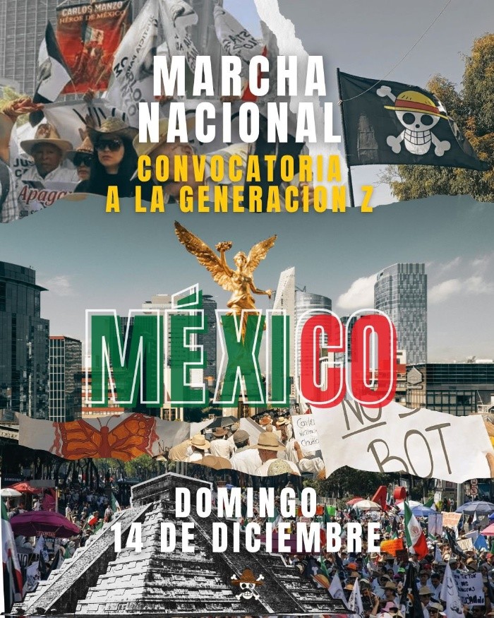 La Generación Z en México llama a una nueva manifestación en la Ciudad de México como parte de una serie de protestas que buscan visibilizar demandas relacionadas con justicia, seguridad y combate a la corrupción.Esta convocatoria se realizó a través de las redes sociales como parte de las recientes marchas realizadas en la capital, que tuvieron amplia participación ciudadana y generaron debates públicos sobre el papel de la juventud en el activismo social.De acuerdo con los organizadores, la marcha pretende mantener un carácter nacional, con llamados a la participación en diferentes entidades del país, aunque la concentración principal volverá a realizarse en la CDMX. Hasta el momento, el colectivo no ha dado a conocer la hora de inicio, la ruta ni los puntos de reunión, elementos que se detallarán en los próximos días a través de sus canales oficiales.Lo que sí se sabe es que esta nueva marcha se llevará a cabo el próximo 14 de diciembre.La convocatoria ocurre en un contexto en el que el movimiento juvenil ha tomado mayor presencia en la agenda pública debido a anteriores movilizaciones en las que miles de participantes exigieron acciones más firmes para atender problemáticas como la violencia, la impunidad y la falta de oportunidades para las nuevas generaciones.Aunque las marchas se han descrito como pacíficas, algunas de ellas derivaron en confrontaciones entre manifestantes y elementos de seguridad, lo que ha llevado a reforzar la atención sobre la respuesta gubernamental ante estas expresiones sociales.Generación Z afirma que la nueva protesta busca no solo mantener viva su agenda de exigencias, sino también insistir en la necesidad de transformaciones institucionales que fortalezcan la transparencia, la rendición de cuentas y la protección de los derechos humanos.Entre los señalamientos más reiterados del movimiento se incluyen la demanda de mecanismos efectivos para combatir la corrupción, la creación de sistemas de seguridad supervisados por ciudadanía y la reducción de prácticas que consideran autoritarias por parte de las autoridades.Además, la organización señala que esta manifestación será una oportunidad para ampliar la participación de jóvenes de distintas regiones del país, con el objetivo de convertir la convocatoria en un referente nacional de movilización social.Ante el anuncio, se prevé que las autoridades capitalinas implementen operativos de seguridad y posibles ajustes viales, especialmente en zonas como el Centro Histórico y avenidas que suelen ser utilizadas como corredores de protesta. Sin embargo, aún no se han emitido comunicados oficiales sobre restricciones, cierres o dispositivos especiales para el 14 de diciembre. YC