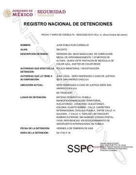 De acuerdo con el Registro Nacional de Detenciones, el político y empresario fue aprehendido en el Aeropuerto Internacional de Huejotzingo, Puebla. Posteriormente, fue trasladado a la Casa de Justicia de San Andrés Cholula, donde –según reportes policiales- enfrenta una acusación de violencia familiar.