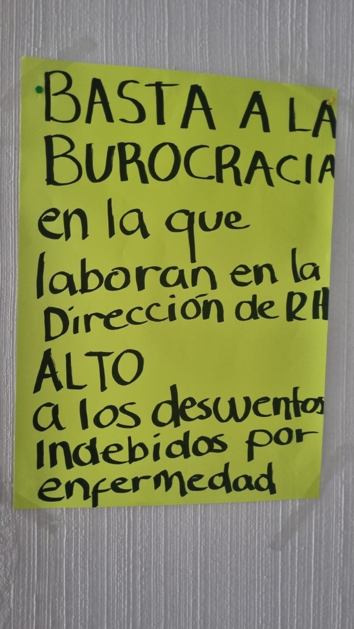 Trabajadores de la Secretaría de Salud Jalisco (SSJ) exigieron la salida de la directora de recursos humanos del Organismo Público Descentralizado (OPD) de Servicios de Salud.El interior de la sede de la SSJ se encuentra tapizada de pancartas que piden la destitución de la Mtr. Yadira Guzmán Alvizo. Entre las quejas, los trabajadores reclamaron que a varios les han descontado de su nómina las ausencias que han tenido por motivos de salud.“Exigimos un trato más humano para los compañeros que se encuentran en proceso de rehabilitación”, se lee en una de las cartulinas pegadas en este edificio gubernamental.Los empleados también señalaron que la directora de recursos humanos no ha respetado los acuerdos que hubo con el sindicato. Para conocer la postura del OPD respecto a estas denuncias, el periódico El Informador solicitó una entrevista con el personal correspondiente, pero hasta la hora de publicación de este artículo, no había sido atendida la petición.Previo a su puesto como directora de Recursos Humano, Guzmán Alvizo había sido regidora en Arandas y posteriormente candidata a diputada federal. FS