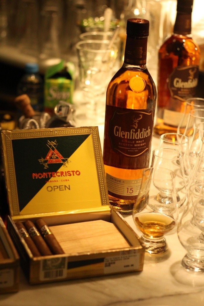 Una tarde de aromas, sabores, sonrisas y mil historias. De diversión pura, pero también de aprendizaje y curiosidad saciada. Todo lo anterior, con un toque de sofisticación, se vivió el pasado jueves por la noche en Amaris, Club de vino y tabaco (Av. Providencia 2969), donde se organizó una cata protagonizada Glenfiddich, el single malt escoces más premiado del mundo. Y para mayor atractivo, se disfrutaron de forma simultánea de unos deliciosos habanos Montecriso.El buen whisky escocés y los habanos cubanos están ligados por el cuidado en su elaboración y una larga historia de perfeccionismo. Es por eso que esta cata doble tiende puentes entre el pasado y el presente. Lo anterior queda reforzado por el concepto que enmarcó la actividad: “Father & Son”.Amaris celebró a padres e hijos el pasado jueves por la noche, permitiendo a los asistentes apreciar los sabores, texturas e historia de Glenfiddich y Montecristo. ¿Los anfitriones? Esteban Alzati y el Dr. Alzati Sánchez, quienes se han encargado de darle una calidez y excelencia al recinto.La cata estuvo dirigida por Christiano Protti, embajador de la marca Glenfidicch, quien explicó la historia detrás de este whisky de malta escocesa, y las propiedades que tiene en sus presentaciones de 12, 15, 18 y 21 años. El cuerpo, los colores y aromas del líquido fueron el punto de partida de una charla que comenzó a las 20:00 horas y que se extendió durante la noche.Pero esta velada también tuvo como uno de sus protagonistas a los habanos Montecristo, cuya larga historia y calidad lo han convertido en uno de los productos preferidos por los amantes de los puros. El equilibrio de su sabor y el cuidado en su fabricación va perfectamente de la mano de Glenfidicch, explicó durante la velada Alejandro Bandinez, experto en el mundo de los puros y en la historia de la marca.Saber másEn Facebook podrás descubrir las diversas actividades de Amaris. Los encuentras con el nombre de @AmarisTandW. Allí se anuncian de manera constante novedades y catas. No te quedes con las ganas y explora un nuevo mundo de sensaciones.