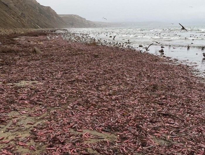 Miles de "peces pene" aparecieron en California luego del embate de varias tormentas invernales. Esta curiosa lombriz de mar apareció al norte de San Francisco, en las orillas de la playa Drake.Bay Nature reportó que miles de estos gusanos, llamados "peces pene", se hallaron en la playa Drake la semana pasada. "Estos organismos son comunes en la costa oeste de Norteamérica, pero gastan su vida en túneles debajo de la arena, por lo que pocos asistentes a la playa conocen de su existencia"."Una reciente tormenta en el norte de California conllevó fuertes olas que dejaron al descubierto partes de arena, por lo que aparecieron estos gusanos a la intemperie".Las gaviotas cazan estas especies, pero aparte son un platillo para los humanos, en algunos lugares, por ejemplo, en Corea del Sur.OB