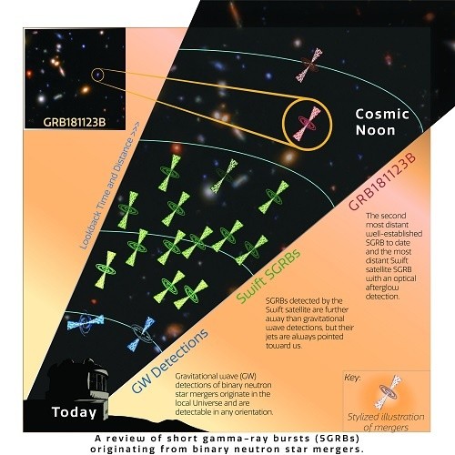 Un equipo de investigación de la Universidad de Northwestern se ha sorprendido luego que un estallido de rayos gamma cortos (SGRB) les permitió obtener la imagen única de un instante, una explosión ocurrida a miles de millones de años luz de distancia en el universo. De acuerdo con la casa de estudios la explosión captada por el grupo encabezado por la experta Wen-fai Fong ocurrió a 10 mil millones de años luz de distancia y a tres mil 800 millones de años del Big Bang. El estallido fue llamado SGRB181123B y los investigadores han sostenido que se trata del segundo más distante conocido hasta el momento a través de los rayos gamma, así como el evento más lejano captado con un resplandor óptico posterior. Wen-fai Fong dijo a través de un comunicado que no esperaban descubrir un SGRB distante debido a su rareza y que son bastante débiles."Realizamos 'análisis forense' con telescopios para comprender su entorno local, porque el aspecto de su galaxia puede decirnos mucho sobre la física subyacente de estos sistemas", agregó.Su compañero Kerry Paterson calificó esta instantánea y experiencia como el descubrimiento de "la punta del iceberg" en términos de explosiones de rayos gamma cortos distantes, lo cual les motiva a seguir estudiando otros eventos del pasado, así como prestar más atención a los detalles en trabajos futuros. La Universidad de Northwestern indicó que algunas de las explosiones más enérgicas y brillantes del universo ocurren debido a la fusión de dos estrellas de neutrones, acto que provoca el estallido de rayos gamma de corta duración. Sin embargo, uno de los detalles que se destacó es que por lo general este tipo de resplandores suelen durar unas pocas horas para después desvanecerse completamente, lo que no pasó en esta ocasión, pues los astrónomos pudieron observar a detalle esta explosión luego de una primera identificación de un observatorio que fue dando cuenta a otros espacios de investigación.Fue a través de este trabajo en conjunto entre varios observatorios que se pudo determinar que SGRB181123B está más distante que la mayoría de este tipo de eventos astronómicos. "Pudimos obtener observaciones profundas de la explosión pocas horas después de su descubrimiento", agregó Kerry Paterson.A la dificultad para capturar imágenes de los SGRB se sumó Wen-fai Fong, pues sostuvo que si se llega demasiado tarde a la vista será un esfuerzo completamente inútil, ya que las herramientas no detectarán nada. "Pero de vez en cuándo, si reacciones lo suficientemente rápido, llegarás a una detección realmente hermosa como esta", sostuvo. Uno de los detalles que se destacan del SGRB181123B es que se produjo cuando el universo estaba increíblemente ocupado y tenía solo el 30 por ciento de su edad actual, período conocido como "alto mediodía cósmico". El estudio fue respaldado por la National Sciende Foundation y la NASA, además que fue publicado en The Astrophysical Journal Letters. AC