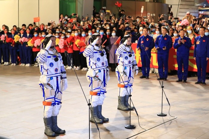 Una tripulación de tres astronautas chinos fue lanzada para una misión de seis meses a bordo de su estación espacial, lo que establecería una nueva marca de tiempo por parte de los astronautas de China en el espacio, en momentos en que el país trabaja para completar el laboratorio orbital.Los tres tripulantes de la nave Shenzhou-13 despegaron en un cohete Gran Marcha-2F la madrugada del sábado, hora local en China.Se esperaba que la nave completara su acoplamiento con el módulo Tianhe en las próximas seis horas, luego de lo cual los astronautas continuarán el trabajo de la tripulación inicial. Esos primeros astronautas realizaron dos caminatas espaciales y desplegaron un brazo robot de 10 metros (33 pies) antes de regresar a mediados de septiembre, al final de una misión de 90 días.La nueva tripulación incluye a dos veteranos de los viajes espaciales: el piloto Zhai Zhigang, de 55 años y Wang Yaping, de 41,la única mujer en la misión, además de Ye Guangfu, de 41, que realiza su primer vuelo espacial.Una banda militar y simpatizantes dieron la despedida a la tripulación cantando "Oda a la Patria", resaltando el peso del orgullo nacional invertido en el programa espacial chino, que ha avanzado aceleradamente en los últimos años.Entre las actividades programadas para la tripulación están tres caminatas espaciales para instalar equipo en preparación para una extensión del laboratorio espacial, evaluar las condiciones de vida en el módulo y conducir experimentos en Medicina espacial y otros campos.El programa espacial chino, conducido por las fuerzas armadas, planea enviar decenas de tripulaciones a la estación en los próximos dos años para hacerla completamente funcional.La Shenzhou-13 es la quinta misión a la estructura orbital, incluso viajes no tripulados para entregar suministros.Cuando la estación se complete con dos módulos adicionales —Mengtian y Wentian—pesará 66 toneladas, una fracción de la estación espacial Internacional, cuyo primer módulo fue lanzado en 1998 y pesará 450 toneladas cuando sea completada.CM