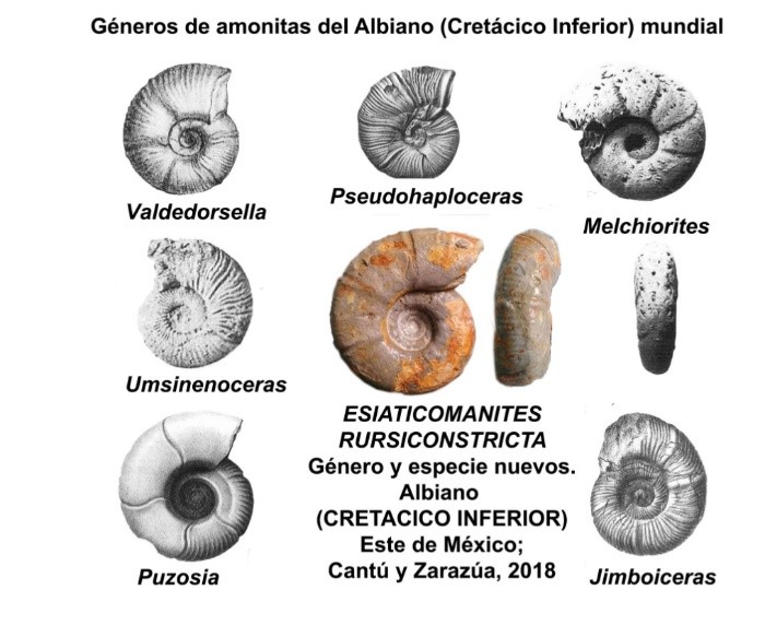 Especialistas del Instituto Politécnico Nacional (IPN) descubrieron un fósil amonita considerado único en el mundo, resultado de las prácticas de campo que se llevan a cabo en la cátedra de exploración petrolera.La pieza corresponde a la de edad Aptiano-Albiano, periodo Cretácico Inferior, y se encontró en los estratos de la Formación Tamaulipas Superior.Al fósil se le nombró Esiaticomanites rursiconstricta, por corresponder a un género y especie nuevos, precisó esta casa de estudios en un comunicado.Los científicos de la Escuela Superior de Ingeniería y Arquitectura (ESIA), Unidad Ticomán, responsables del hallazgo, detallaron que la pieza consiste en una concha pequeña, subevoluta, de lados planos, poco convexos, vientre ligeramente ancho, redondeado, pared umbilical vertical con reborde redondo, que mide 8.7 centímetros de diámetro y 2.5 centímetros del ombligo.El doctor Abelardo Cantú-Chapa y el estudiante Juan Carlos Zarazúa Saucedo, del área de Ciencias de la Tierra, comentaron que con el nombre Esiaticomanites se honra a la ESIA.Indicaron que este vestigio es de la especie rursiconstricta, porque alude al tipo de constricciones radiales, dirigidas ligeramente hacia atrás, que cruzan la parte lateral y ventral de la concha, y pertenece a cefalópodos fósiles de la familia y subfamilia Desmoceratide y Puzosiinae.“Para nosotros es muy satisfactorio bautizar este fósil, que es único en el mundo, con el nombre de la escuela. Es una forma que tenemos para honrarla”, subrayó Juan Zarazúa.Explicó que este fósil (molusco cefalópodo) se encontró en los estratos de la Formación Tamaulipas Superior, durante las prácticas de campo que realizan en la cátedra de exploración petrolera en México.“Estudiamos el grupo de las amonitas porque señalan la edad geológica de las rocas que lo contienen, son de gran utilidad en los trabajos que realizamos de exploración petrolera en la planicie costera del Golfo de México”, expuso el alumno.Zarazúa Saucedo añadió que el género Esiaticomanites aquí propuesto, difiere de otros géneros de la familia Desmoceratidae, del Cretácico Inferior mundial; se diferencia por la forma y ornamentación de su concha.AC