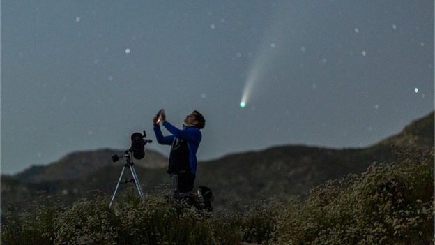 Un visitante del espacio lejano se acerca a la Tierra: el cometa Neowise, descubierto en marzo pasado, se aproxima esta semana a nuestro planeta en su largo viaje por nuestro sistema solar.Desde que se acercó al Sol a inicios de julio, su brillo y larga cola han comenzado a crecer y ya es el protagonista de miles de asombrosas fotografías en el firmamento del amanecer y atardecer (en el hemisferio norte).Es el primer cometa que podemos apreciar a simple vista en más de una década y, como casi todo fenómeno astronómico, ha generado una creciente fascinación.Por eso, en BBC Mundo te preguntamos la pasada semana qué querías saber sobre el Neowise y sobre los cometas en general, y entrevistamos a una experta de la Nasa para responder tus preguntas.La doctora Emily Kramer no es solo especialista en polvo cometario y en detección y caracterización de objetos cercanos a la Tierra del Laboratorio de Propulsión a Chorro de la agencia espacial estadounidense, sino que forma parte también del equipo de investigación que descubrió el Neowise.Aquí están las respuestas de Kramer a las preguntas de los lectores. Algunas, las condensamos para claridad y concisión.Lectores de Argentina, Bolivia, Colombia, Cuba, Panamá, El Salvador, México, Paraguay, Estados Unidos, Venezuela y Suiza preguntaron sobre los mejores lugares y fechas para ver el comenta... ¿qué aconseja para una mejor observación?El cometa NEOWISE se ve mejor hacia el noroeste del cielo por la noche, aproximadamente una hora después del atardecer.Cada día, el cometa estará un poco más alto en el cielo, por lo que será más fácil de ver. Esperamos que se debilite a medida que se aleja del Sol, por lo que es mejor tratar de verlo lo antes posible.Sin embargo, los cometas pueden sorprendernos, por lo que existe la posibilidad de que siga siendo brillante durante varias semanas más.La mejor manera de encontrar el cometa ahora es buscar la Osa Mayor en el noroeste del firmamento después del atardecer, luego mirar debajo del "cuenco" del cucharón (que forma la constelación).A partir del 20 de julio, el cometa se encuentra a un par de puños de distancia por debajo del tazón que representa la constelación y se moverá diagonalmente debajo de la longitud de la Osa Mayor cada día.En este momento, el cometa solo es visible desde el hemisferio norte y es más fácil de ver mientras más al norte del ecuador te encuentres.En Instagram nos preguntan quién lo llamó Neowise y por qué.Los cometas llevan el nombre de su descubridor.Tradicionalmente, era quien miraba a través del telescopio cuando se encontraba el cometa.En los últimos años, se han descubierto muchos cometas en grandes búsquedas automatizadas.Para reconocer la contribución de todo el equipo, los cometas encontrados de esta manera se nombran a partir de la investigación que los descubre.El cometa Neowise fue descubierto por la misión NEOWISE (de la NASA, que tiene un telescopio de exploración espacial) como parte de nuestro procesamiento de datos habitual para detectar y caracterizar objetos del sistema solar.De ahí que tomó el nombre de la misión.¿Cómo es que los astrónomos no advirtieron antes que este cometa pasaría cerca de nuestro Sol?Cuando descubrimos el cometa NEOWISE por primera vez a fines de marzo, supimos en una semana que pasaría cerca del Sol.Sin embargo, el brillo de los cometas es notoriamente difícil de predecir y no queríamos hacer una falso aviso sobre qué tan brillante podría llegar a ser.Los cometas a veces también se desintegran cuando se acercan al Sol, por lo que esperamos hasta estar seguros de que sobreviviría la parte más difícil de su viaje antes de alertar a la gente de lo espectacular que podría llegar a ser.¿Qué define la órbita de un cometa, qué lo controla?, ¿hacia dónde se dirigen los comentas?, ¿de dónde se cree que viene este cometa?Todos los objetos en nuestro sistema solar, incluidos los cometas, están en órbitas elípticas, es decir, círculos estirados, que están unidos a nuestro sistema solar por la fuerza de la gravedad del Sol.La extensión del círculo depende de la procedencia inicial del cometa.El cometa NEOWISE es un cometa de largo período que pasa la mayor parte del tiempo muy lejos del Sol en un área conocida como la Nube de Oort.¿Veremos este cometa nuevamente en el futuro?,si sí, ¿cuándo?Como su nombre lo indica, los cometas de períodos largos tienen períodos largos: tardan miles de años en completar su viaje a través del sistema solar. El cometa Neowise no es una excepción y visita el sistema solar interior solo una vez aproximadamente cada 6.800 años.Sebastián Quintero Hernández pregunta qué tipo de matemáticas usan ustedes para calcular su trayectoria.La base para la mayoría de los cálculos orbitales, incluso hasta el día de hoy, son las Leyes de Kepler, desarrolladas por Johannes Kepler a principios del siglo XVII.Se vuelve un poco más complicado para los cometas, ya que el gas que sale del núcleo del cometa puede empujarlo un poco más fuera de la órbita de lo que supondrían solo las Leyes de Kepler, pero la trigonometría y el álgebra simples, con un poco de cálculo, siguen siendo la base para este tipo de trabajo.¿Es realmente posible con la tecnología actual cambiar la órbita de un cometa? Si no, ¿cuándo crees que sería posible? (Pregunta de Herbert Lizama).No podemos cambiar la órbita de un cometa con nuestra tecnología actual. Es difícil predecir cuándo será posible en el futuro.¿El brillo del cometa es propio o un reflejo de la luz solar? (Pregunta de Jefferson Cisneros).El brillo del cometa proviene de un reflejo de la luz solar.¿Cuán grande es? ¿Qué diámetro tiene?El cometa Neowise tiene un diámetro de unos 5 km.¿A qué distancia del sol comienza a formarse la cola del cometa? ¿Cuánto mide generalmente la cola? (Pregunta de Antonio Chang).La larga y llamativa cola que vemos en el cometa Neowise está hecha princ