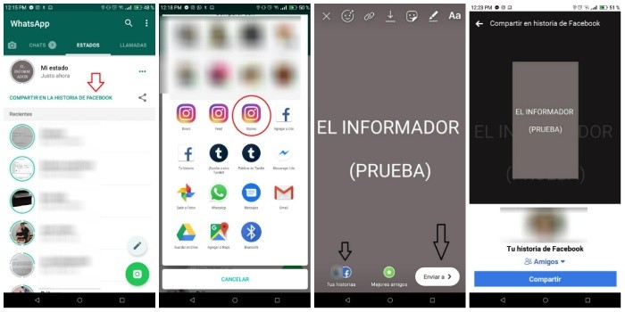 Como se había previsto, la compañía de Mark Zuckerberg comenzó a entrelazar sus aplicaciones, partiendo con la vinculación de los estados de WhatsApp con las historias de Messenger, Facebook e Instagram.Para activar la función es necesario tener instalada la última versión de la aplicación de WhatsApp que está disponible en Apple Store y Play Store (compatible en Android y iOS), en la versión 2.19.92 y 2.19.258, respectivamente. Posteriormente, se ingresa a la aplicación para ir a la sección de “estados” y elegir el tipo de contenido que se desea compartir: ya sea en texto (el ícono de lápiz) o contenido multimedia (en el ícono de la cámara).Una vez que se eligió el estado y se compartió normalmente en WhatsApp, aparecerá automáticamente la opción de compartir la historia en Facebook, Instagram y otras redes sociales donde se puede publicar dicho contenido. También se puede acceder individualmente al contenido, al seleccionar los tres puntos para abrir opciones de estado y directamente pulsar en “Compartir en Facebook” para vincular los estados. La función de vinculación de estados ya estaba disponible de Instagram para Facebook, por lo que ahora la comunicación entre las tres aplicaciones será más dinámica y fácil de que tus seguidores y contactos estén al tanto del contenido que compartes. La función, ideada por Mark Zuckerberg, presidente ejecutivo de Facebook, tiene por objetivo incrementar la utilidad de la red social al mantener a sus millones de usuarios dentro de su ecosistema, señalaron fuentes de la empresa.AC
