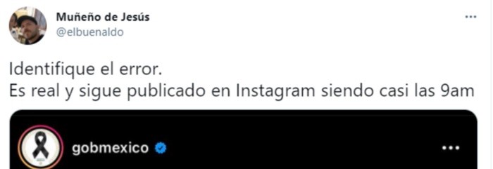 La cuenta de Instagram del Gobierno de México fue víctima de la burla de los usuarios que encontraron un error en una publicación que fue compartida y posteriormente eliminada de la red social. Y es que en la plataforma se colocó, de forma errónea, una imagen en la que aparecía una ilustración de la bandera de México con los colores ordenados al revés.Tras la conferencia mañanera del jueves del Presidente Andrés Manuel López Obrador (AMLO), se difundió una ilustración temática de México y Estados Unidos en la que aparecían las banderas de ambos países, aunque la azteca tenía los colores invertidos: primero el rojo, luego el blanco, y al final el verde.La imagen pretendía hablar sobre los avances que hay entre México y EU respecto a la reapertura de la frontera entre ambos países, pues ha permanecido cerrada largo tiempo debido a la pandemia de COVID-19. Ayer se anunció que el Presidente AMLO tendría una reunión virtual este viernes con la vicepresidenta del país vecino, Kamala Harris, en el que se tratarían varios temas. Entre estos destacan el fenómeno migratorio, la reapertura de la frontera, y ''otros asuntos de interés para las dos naciones'', dijo el Mandatario.OF