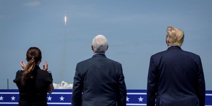 Un cohete Falcon 9 de la compañía aeronáutica SpaceX con una nave en la que viajan dos astronautas de la NASA despegó este sábado desde Cabo Cañaveral (Florida) en el primer vuelo espacial con humanos a la Estación Espacial Internacional (EEI) desde suelo estadounidense en nueve años.A las 15:22 hora local el cohete despegó desde la plataforma 39A del Centro Espacial Kennedy ante la presencia del presidente de Estados Unidos, Donald Trump, después de que el pasado miércoles se cancelara el lanzamiento por culpa de las malas condiciones meteorológicas.A bordo de la cápsula Crew Dragon, situada en la punta del cohete, viajan Doug Harley y Bob Benhken, dos astronautas que participaron en las misiones de los transbordadores canceladas por la NASA después del viaje del Atlantis en 2011."Es absolutamente un honor para nosotros formar parte de este gran esfuerzo de volver a poner a Estados Unidos en el mercado de los lanzamientos espaciales", dijo Behnken unos minutos antes de despegar."Gracias por todo el trabajo que han hecho y poner a Estados Unidos de nuevo en la órbita terrestre desde la costa de Florida", añadió Hurley ya desde el espacio.Las previsiones del escuadrón 45 de la Fuerza Aérea estadounidense inicialmente auguraban un 50 % de probabilidades de que se pospusiera el lanzamiento hasta el domingo, cuando se esperaba que las condiciones climáticas mejoraran considerablemente, pero el tiempo dio una tregua y permitió el despegue del cohete.Tan sólo siete minutos antes de que finalizara la cuenta atrás, se dio la definitiva luz verde para el despegue tras la última actualización meteorológica.El ascenso, que duró un total de nueve minutos, se produjo sin complicaciones hasta los 200 kilómetros de altura cuando los propulsores de la nave entraron en funcionamiento.Doce minutos después del despegue, la cápsula Crew Dragon se separó completamente de la segunda parte del cohete Falcon 9 y puso rumbo a la EEI dónde los astronautas pasarán entre seis y dieciséis semanas realizando investigaciones técnicas y científicas antes de volver a la Tierra.A su vez, el cohete Falcon 9 aterrizó en la plataforma "Por Supuesto Todavía Te Quiero" del océano Atlántico a las 15:33 hora local.Unas 19 horas después del despegue se espera que la nave atraque en la EEI en lo que será la conclusión de una misión que abre el camino a la comercialización de la órbita terrestre y, de tener éxito, la NASA certificaría la capacidad de realizar vuelos espaciales de la compañía fundada por Musk, creador también de la compañía de automóviles eléctricos de lujo Tesla.Una vez que los astronautas vuelvan a la Tierra, el próximo lanzamiento está planificado para el 30 de agosto, cuando comenzarían las misiones operacionales de la NASA con ayuda de SpaceX, y dejarían atrás estos nueve años en los que Estados Unidos precisó de los sistemas de lanzamiento rusos como el Soyuz para enviar a sus astronautas al espacio.OF