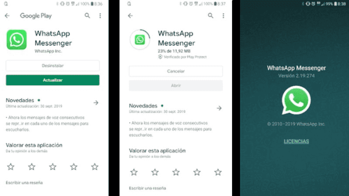 Así lo alertó esta semana el Instituto Nacional de Ciberseguridad (INCIBE) español en un comunicado, en el que menciona que la vulnerabilidad se esconde en imágenes con extensión GIF "manipuladas de forma maliciosa" que llegan o son utilizadas en la aplicación.Estos gif o imágenes en movimiento instalan un código malicioso con el que el atacante podría conseguir tener acceso a información personal de la víctima.El hacker, avisa el organismo, podría incluso ejecutar funcionalidades como grabar video o audio, leer nuestros mensajes o robar archivos de nuestro celular.El fallo fue descubierto por un analista de seguridad conocido como Awakened que demostró en su blog cómo funcionaba el error."El fallo de seguridad funciona bien para Android 8.1 y 9.0, pero no funciona para Android 8.0 o sus versiones inferiores", dijo.Se recomienda actualizar la aplicación a versiones posteriores a la 2.19.244.Para ello, accede a través de Play Store o la página oficial de WhatsApp, para descargar la última versión disponible.1.- Desde la app de Play Store, busca la aplicación ya instalada y a continuación, pulsa sobre el botón "Actualizar".Esta es la opción más sencilla.2.- Desde la web, debes acceder a la opción "Descargar" que encontrarás en el menú principal de la página web.Una vez allí selecciona tu dispositivo, en este caso Android.A continuación, pulsa en el botón "Descargar Ahora" y ejecuta el archivo .apk, para iniciar la instalación.Facebook, propietario de WhatsApp desde 2016, contestó en una nota que "no tenemos razones para creer que usuarios fueron afectados por este fallo. Siempre estamos trabajando en mejores formas para ofrecer actualizaciones de seguridad".La red social ha lanzado un parche de seguridad que soluciona el error.A pesar de que los mensajes en WhatsApp están cifrados de extremo a extremo, lo que significa que solo deben aparecer en el dispositivo del remitente o del destinatario, la app sigue siendo vulnerable.Por eso es buena idea mantenerse al día con todas las actualizaciones de la aplicación, ya que a menudo incluyen ajustes de seguridad, recomiendan los expertos.***Ahora puedes recibir notificaciones de BBC Mundo. Descarga la nueva versión de nuestra app y actívalas para no perderte nuestro mejor contenido.