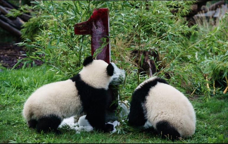 Los populares pandas gemelos del zoológico de Berlín celebraron el lunes su primer cumpleaños con un pastel helado especial y una porción de nieve.“Pit” y “Paule” —sus nombres chinos son “Meng Xiang” y “Meng Yuan”— fueron los primeros pandas que nacieron en Alemania y se han convertido en la principal atracción del zoológico de la capital alemana desde que hicieron su debut público en enero. China los prestó, igual que sus padres.Los cachorros, que pesaron menos de 200 gramos al nacer, ahora pesan casi 28 kilos.Los cuidadores del zoológico les llevaron el lunes un pastel helado con la forma de la figura 1, hecho con jugo de remolacha, manzanas, batatas y bambú, y decorado con una porción de nieve.AC