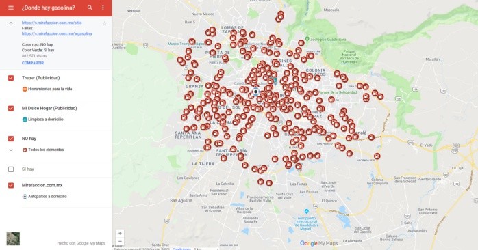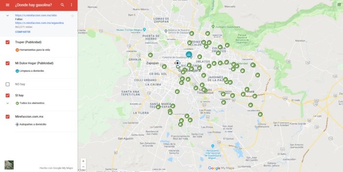 Debido al desabasto de gasolina que ha afectado a varios estados del país en los últimos días, entre ellos Jalisco, han aparecido aplicaciones que ayudan a los usuarios a identificar los puntos donde se puede conseguir combustible.Una de estas opciones es el mapa creado por Mi Refacción Rigs, una empresa totalmente tapatía que habilitó un desarrollo tecnológico para actualizar en tiempo real las estaciones de servicio que tienen combustible para despachar. El mapa es alimentado con reportes ciudadanos, a través de WhatsApp (+52 1 33 2537 7029) y un formulario de Google que están disponibles en el sitio gasolina.mirefaccion.com.mx cualquier persona puede reportar nuevas estaciones en servicio o el momento en el que dejen de despachar.El mapa creado por esta empresa tapatía ya tiene más de un millón 200 mil visualizaciones durante las últimas horas.Además de la Zona Metropolitana de Guadalajara, el mapa también muestra reportes de gasolineras en Guanajuato, Michoacán, Querétaro, Toluca, Ciudad de México y Puebla.LEE MÁS NOTICIAS SOBRE EL DESABASTO DE GASOLINAOF