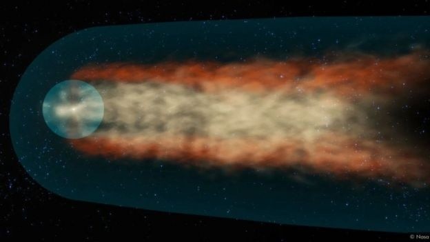 Lejos del abrazo cálido del Sol, el límite de nuestro sistema solar parecería ser un lugar frío, vacío y oscuro.Durante muchos años se pensó que ese enorme espacio entre nosotros y la estrella más cercana era un vasto territorio de la nada.Hasta hace poco, era una zona que la humanidad sólo podía apreciar en la distancia. Los astrónomos apenas le ponían atención, preferían enfocar su tiempo y sus recursos a masas estelares, estrellas vecinas, galaxias y nebulosas.Pero dos naves, construidas y lanzadas al espacio en los años 70, nos están dando los primeros atisbos de esta extraña región que es conocida como el espacio interestelar.Son los primeros objetos fabricados por el ser humano que abandonan el Sistema Solar y, como tal, se han internado en territorios inexplorados. Ninguna nave espacial ha llegado tan lejos.Y estos dos dispositivos han revelado que más allá de los límites de nuestro Sistema Solar hay una región llena de actividad caótica y "espumosa"."Cuando miras las diferentes partes del espectro electromagnético, esa área del espacio es muy diferente de la oscuridad que percibimos con nuestros ojos", le dice a la BBC Michelle Bannister, astrónoma de la Universidad de Canterbury en Christchurch, Nueva Zelanda, que estudia los exteriores del Sistema Solar.Y añade: "Los campos magnéticos están luchando y empujando y además están conectados entre sí. Más o menos como si estuviéramos sumergidos bajo las cataratas del Niágara".Pero en vez del agua cayendo, la turbulencia que se percibe allí es el resultado del viento solar -una corriente constante y potente de partículas, o plasma, que se esparce en todas las direcciones desde el Sol-, que se choca contra un cóctel de gases, polvo y rayos cósmicos entre sistemas estelares, conocido como el "medio interestelar".Los científicos, poco a poco, han ido construyendo una imagen de lo que es un medio interestelar, a lo largo de los últimos 50 años y gracias a observaciones con ondas radiales y telescopios de rayos X.Así, han revelado que este medio interestelar está compuesto de átomos de hidrógeno ionizados extremadamente difusos, polvo y rayos cósmicos intercalados con densas nubes moleculares de gas que se cree son el lugar de nacimiento de nuevas estrellas.Pero la naturaleza exacta de ese lugar justo afuera de nuestro Sistema Solar ha sido largamente un misterio, principalmente porque el Sol, los ocho planetas y otros objetos estelares están contenidos por una gigantesca burbuja formada por el viento solar, conocida como la heliosfera.A medida que el Sol y los planetas circundantes se reparten a través de la galaxia, esta burbuja choca con el medio interestelar como un escudo invisible, lo que permite mantener a raya a la mayoría de los rayos cósmicos dañinos y otros materiales.Pero esta protección también hace mucho más difícil estudiar qué es lo que ocurre más allá de la burbuja. Incluso determinar su tamaño y forma interior."Es como si estuvieras dentro de tu casa y quisieras saber cómo es. Hay que salir y mirar desde afuera", le explica a la BBC Elena Provornikova, investigadora postdoctoral en el Laboratorio de Física Aplicada de la Universidad Johns Hopkins."La única forma de hacerse más o menos una idea es viajar lejos del Sol, mirar hacia atrás y tomar una imagen desde fuera de la heliosfera".Pero esta no es una tarea sencilla. Comparada con toda la Vía Láctea, nuestro Sistema Solar es tan pequeño como un grano de arroz flotando sobre el océano Pacífico.Y a pesar de eso, los límites de la heliosfera están tan distantes que al Voyager 1 y el Voyager 2 les tomó 40 años llegar hasta ese lugar, después de salir de la Tierra.La Voyager 1, que tomó una ruta más directa a través del Sistema Solar, cruzó hacia el medio interestelar en 2012, antes de que la 2 lo hiciera en 2018.Actualmente ambas sondas se encuentran a unos 13.000 millones de kilómetros de la Tierra; se siguen alejando de nuestro Sistema Solar a la vez que envían más información.Lo que estas dos sondas han revelado acerca de este lugar entre la heliosfera y el medio interestelar ha provisto a la ciencia de nuevas pistas sobre cómo se formó nuestro Sistema Solar y, sobre todo, cómo es posible la existencia de vida en la Tierra.Pero lejos de ser una frontera visible, el verdadero límite de nuestro Sistema Solar en realidad se mantiene agitado con campos magnéticos, el choque constante de tormentas estelares y de tormentas de partículas de alta energía.El tamaño y la forma de la burbuja de la heliosfera se altera debido a los cambios en la energía que provee el Sol, a medida que vamos pasando por diferentes regiones del medio interestelar.Cuando el viento solar aumenta o disminuye, cambia la presión sobre esta burbuja.En 2014, la actividad del Sol aumentó, y envió lo que podría llamarse un huracán de viento solar dentro del espacio.Esa explosión rápidamente pasó por Mercurio y Venus a una velocidad de 800 kilómetros por segundo. Después de dos días y 150 millones de kilómetros de recorrido, alcanzó la Tierra. Afortunadamente, nuestro campo magnético nos protegió de una poderosa radiación solar.La onda explosiva continuó su camino hacia Marte un día después y, a través de un cinturón de asteroides, se encaminó en dirección a los gigantes gaseosos: Júpiter, Saturno y Urano.Dos meses después llegó a Neptuno, que orbita a una distancia del Sol cercana a los 4,5 mil millones de kilómetros.Tras seis meses, este viento finalmente alcanzó el punto más allá de los 13.000 millones de kilómetros desde el Sol, que se conoce como el frente de choque de terminación y es donde el viento solar disminuye su velocidad.En ese lugar, el campo magnético del Sol, que es el que impulsa el viento solar, se debilita lo suficiente para que el medio interestelar lo pueda empujar hacia atrás.La ráfaga de viento solar que emergió después atravesar el frente de choque de termina
