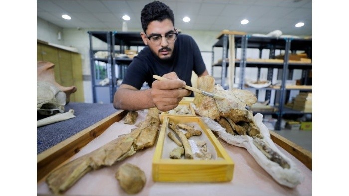 Hace 43 millones de años, una ballena de cuatro patas vivía en nuestro planeta.El arcaico anfibio, que además de nadar también caminaba por la tierra, es considerado un antepasado de las ballenas modernas.Este miércoles, científicos egipcios anunciaron que han identificado una nueva especie de este extraordinario espécimen.El fósil del anfibio Phiomicetus anubis fue descubierto originalmente en el desierto Occidental de Egipto.Su nombre fue escogido porque su cráneo se asemeja al de Anubis, el antiguo dios egipcio de los muertos con cabeza de chacal.Estos animales surgieron de mamíferos parecidos a los ciervos que habitaron la Tierra durante 10 millones de años.Con un peso estimado de 600 kg y tres metros de longitud, el Phiomicetus anubis gozaba de fuertes mandíbulas para atrapar a sus presas, según un estudio publicado por la revista Proceedings of the Royal Society B.El esqueleto fue encontrado en la Depresión de Fayum, al oeste del río Nilo, por científicos de la Universidad de Mansoura.Aunque el área ahora es desértica, en algún momento llegó a estar cubierta por el mar y es una rica fuente de fósiles."El Phiomicetus anubis es una nueva especie de ballena que constituye un descubrimiento crítico para la paleontología egipcia y africana", le dijo Abdullah Gohar, el autor principal del estudio, a la agencia de noticias Reuters.Si bien esta no es la primera vez que se encuentra el fósil de una ballena con patas, Phiomicetus anubis podría ser el primer tipo de ballena semiacuática que se ha descubierto en África.Hesham Sallam, fundador del Centro de Paleontología de Vertebrados de la Universidad de Mansoura, celebró el descubrimiento y compartío en Twitter la ubicación del hallazgo en el desierto egipcio.La evolución temprana de las ballenas en África sigue siendo en gran parte un misterio, dijeron los investigadores.Se cree que las primeras ballenas evolucionaron en el sur de Asia hace unos 50 millones de años.En 2011, un equipo de paleontólogos en Perú descubrió un fósil de ballena de 43 millones de años con cuatro patas, patas palmeadas y pezuñas.***Ahora puedes recibir notificaciones de BBC Mundo. Descarga la nueva versión de nuestra app y actívalas para no perderte nuestro mejor contenido.