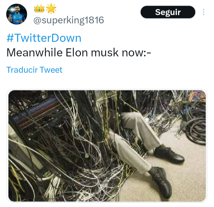 Si llevas horas desesperado porque no cargan tus mensajes, no te desesperes: Usuarios de Twitter han reportado durante varias horas una falla general en la aplicación y la versión web de la plataforma este sábado 1 de julio.El portal Down Detector ya había publicado reportes con problemas en Twitter, sin embargo, las fallas se agravaron alrededor de las 10:00 horas de este sábado y hasta el corte de las 12:00 continúan.El mensaje "Algo salió mal. Intenta recargar" aparece en home, al realizar búsquedas o ingresar en las tendencias, sin embargo, las notificaciones llegan con mayor regularidad.Después de que Twitter comenzara a reportar problemas, los usuarios de la red social no han dejado pasar la oportunidad y han publicado en otras plataformas memes contra el nuevo propietario, el empresario Elon Musk.Le exigen que se ponga a trabajar para poder seguir usando Twitter con normalidad.OF