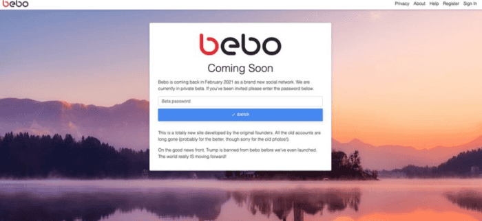 El cofundador de Bebo, Michael Birch, planea relanzar la red social con un enfoque en los perfiles y las interacciones entre amigos "en tiempo real" en lugar del contenido de noticias en el núcleo de la estrategia de Twitter y Facebook.Birch dice que su objetivo es proporcionar un "descanso refrescante" de la desinformación difundida en otros lugares.En una entrevista exclusiva, Birch le dijo a la BBC que él mismo estaba codificando el esfuerzo.Y aunque tiene grandes esperanzas, reconoce que las probabilidades están en su contra.Bebo, un acrónimo de "blog early, blog often" (bloguea temprano, bloguea a menudo), fue una vez la red más popular en el Reino Unido, además de ser importante en Irlanda, Australia y Nueva Zelanda.En su apogeo Bebo tenía más de 40 millones de miembros.En 2008, Birch y su esposa Xochi vendieron el sitio a AOL por US$850 millones.Posteriormente lo volvieron a comprar por US$1 millón y trataron de renovarlo de varias maneras, más recientemente como un servicio de transmisión de deportes electrónicos, antes de finalmente vender el negocio a Twitch de Amazon en 2019 por US$25 millones.Sin embargo, la pareja retuvo los derechos de la marca.Y con tiempo en sus manos durante la pandemia de coronavirus, Birch comenzó a pensar en qué tipo de brecha podría haber en el mercado."Lo llamamos red social en vivo: cuando estás conectado a Bebo, sabes qué otros amigos están en línea", explica desde su casa en las Islas Vírgenes Británicas."Puedes interactuar con ellos en tiempo real. Puedes comentar su foto en su perfil. Recibirán una notificación, vendrán a la foto e incluso pueden tener una conversación debajo de la foto."Es un experimento, veremos cómo funciona realmente. Pero creemos que es una forma más emocionante de conectarse".Incluso antes de anunciar planes para un relanzamiento, Birch indicó que la dirección web de Bebo atraía aproximadamente una visita cada tres segundos a pesar de que el servicio estaba fuera de línea.Espera que una mezcla de nostalgia y curiosidad atraiga a suficientes usuarios pioneros para permitir que la gente encuentre amigos para interactuar en el sitio regenerado.Sin embargo, algunos de los que están familiarizados con el Bebo original se muestran escépticos sobre sus perspectivas."Probablemente sea valiente lanzar una nueva red social en este clima cuando hay preocupaciones sobre los posibles daños causados por la difusión de información errónea en las redes sociales, por lo que espero que Bebo se tome en serio sus responsabilidades de cuidar a sus miembros y sus datos", dice Kate Bevan, editora de informática de la revista Which?."Pero también hay algo deliciosamente optimista en este plan", agrega.Birch aún no está dispuesto a compartir capturas de pantalla del nuevo Bebo y, por ahora, su única presencia en línea es una página que dice "próximamente" y que advierte a los posibles usuarios que no podrán acceder a sus antiguas cuentas.También habla de una promesa de que se prohibirá a Donald Trump en el sitio.El empresario señala que pasa alrededor de 100 horas a la semana codificando la plataforma y planea permitir que los primeros miembros, solo por invitación, comiencen a probarla antes de fin de mes.La siguiente entrevista ha sido editada para mayor brevedad y claridad:Ahora es un buen momento para lanzar otra red social. El coronavirus ha tenido muchos efectos perjudiciales, pero creo que abrió los ojos de la gente a cosas nuevas de nuevas formas. Y la gente anhela la interacción.Vamos a hacer algunos guiños al pasado, pero cuando ingreses al sitio no verás el Bebo original como estaba.Lo que queremos hacer es volver un poco a esta idea del perfil. El hecho de que tienes una identidad de la que te enorgulleces. Que puedes visitar un perfil y ver cosas que no son solo los últimos artículos de noticias que se comparten.En Facebook, si alguien publica algo en su servicio de noticias, es posible que lo haya hecho hace un minuto, pero no sientes que estás en línea en esta experiencia con esa persona. Y eso es lo que estamos tratando de lograr.Por el momento, soy el único que lo codifica. Esto comenzó como un proyecto divertido durante el confinamiento para tener algo qué hacer. Ciertamente no comenzó con la idea de algo que puede llegar a ser tan grande como lo que teníamos.Pero, ¿pienso que esa es una posibilidad? Por supuesto que lo es. Y es algo divertido de contemplar. ¿Realmente creo que eso va a suceder? No. Pero a veces es más divertido intentar algo que necesariamente lograrlo.Eso no parece divertido. ¿Quiero hacer esa parte? No. Pero ¿tengo que hacer esa parte? Sí.Cuando hicimos Bebo por primera vez, pasé el 95% de mi tiempo en los medios hablando con los periodistas sobre la privacidad y el acoso. Y esas cuestiones siguen siendo evidentemente igual de relevantes hoy en día.Pero creo que una de las cosas más dañinas ha sido la difusión de información errónea y la gente compartiendo cosas similares a lo que creen sus amigos, lo que refuerza a uno mismo y no permite que se presenten diferentes perspectivas frente a las personas.No nos estamos enfocando en compartir nuevos datos. Pero si tuviéramos que seguir ese camino y explorarlo, creo que tendríamos que pensar mucho sobre cómo evitar algunas de las dificultades.Por ahora, la gente puede pensar que es un descanso refrescante que Bebo no sea otra fuente de noticias de desinformación.Creo que posiblemente sea cierto. Sí lo creo.Creo que las empresas de redes sociales se encuentran en una posición difícil. ¿Podrían haber manejado mejor las cosas? Probablemente. ¿Son las cosas fáciles de manejar para ellos y son totalmente responsables? Probablemente no.Algunas de las repercusiones de las redes sociales no fueron obvias al principio.Vendiste Bebo por US$850 millones. Pero Mark Zuckerberg te había propuesto venderlo a Facebook a cambio de opciones sobre acciones. ¿Alguna vez te arrepentiste de no habe