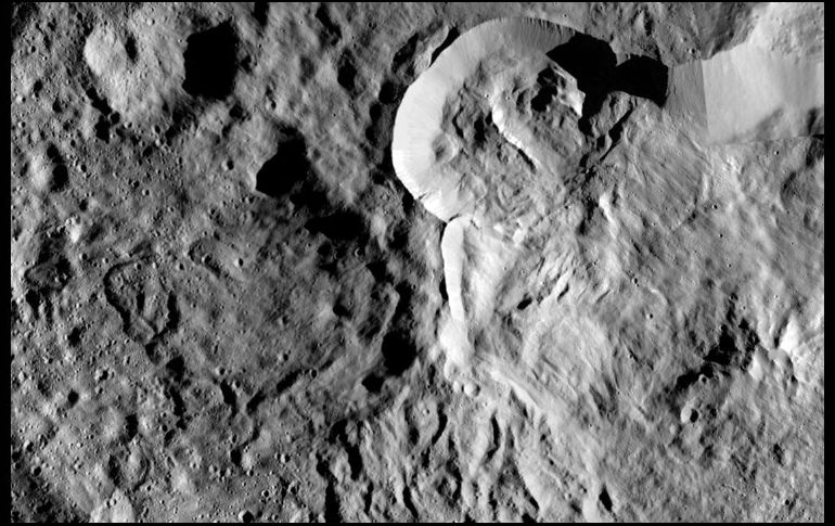 La sonda espacial Dawn de la NASA envía increíbles fotografías de primer plano del planeta enano Ceres.La nave orbita a Ceres desde 2015. En junio llegó a su órbita más baja, a sólo 35 kilómetros (22 millas) de la superficie.Las fotografías más recientes difundidas el lunes ofrecen vistas sin precedentes de un enorme cráter ocasionado por un impacto conocido por sus depósitos salinos brillantes. En el borde se pueden apreciar claramente algunos derrubios.Marc Rayman, jefe de ingenieros del Laboratorio de Propulsión a Reacción en Pasadena, California, dijo que los resultados son mejor de lo esperado.Antes de llegar a Ceres, Dawn exploró el asteroide Vesta. Ambos se ubican en el cinturón de asteroides entre Marte y Júpiter.Lanzado en 2007 con un motor de iones, Dawn se acerca al final de su misión. NASA espera que la nave opere sólo unos cuantos meses más.JB