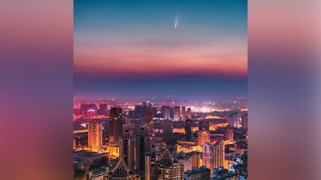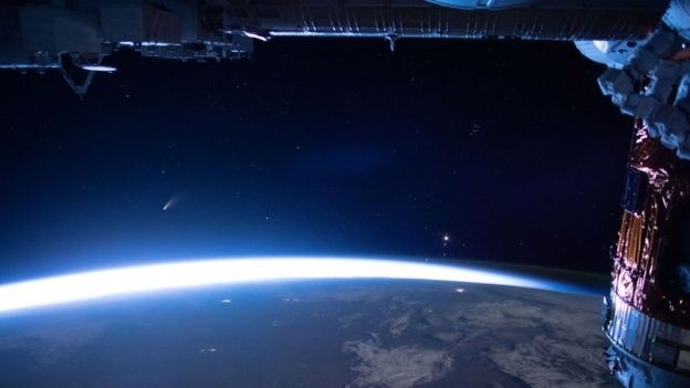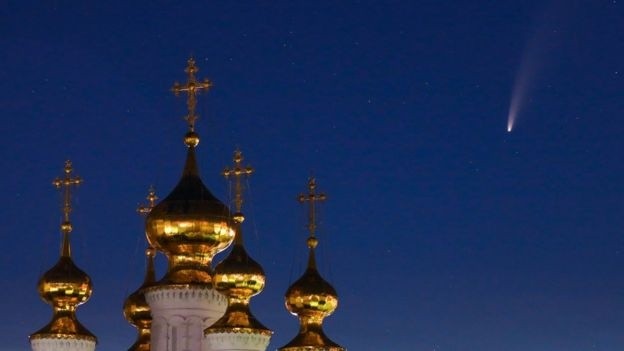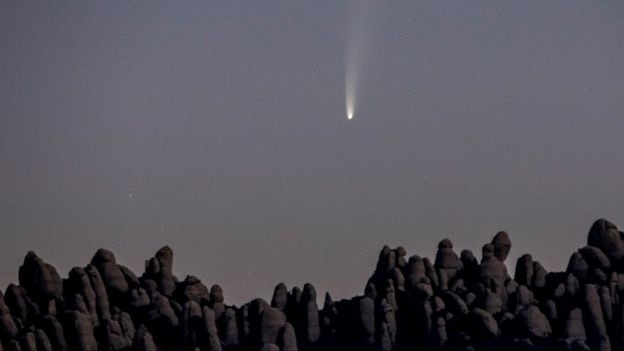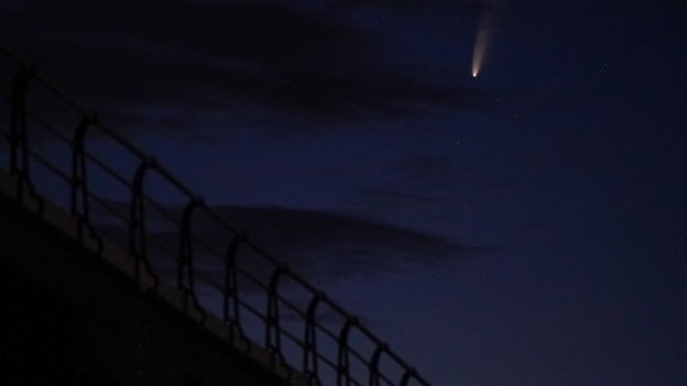 Un fascinante cometa está siendo observado por astrónomos en todo el mundo a medida que se acerca a la Tierra.Descubierto a finales de marzo, el Neowise es uno de los pocos cometas que se puede ver a simple vista, sin tener que recurrir a binoculares o telescopios.Alcanzará a su punto más cercano a la Tierra el próximo 23 de julio, aunque todavía estará a unos 103 millones de kilómetros de distancia.Estos son algunos de los lugares que ya pudieron disfrutar de esta exhibición "única en la vida".La foto de arriba fue tomada en el muelle de Saltburn, en Reino Unido.El cometa es visible en las latitudes medias del hemisferio norte, es decir, en Europa, Estados Unidos y Canadá, justo antes del amanecer y después del atardecer.Para poder verlo, debes dirigir la mirada hacia el norte y noreste, pero siempre en una zona baja en el horizonte. Muchas personas alrededor del mundo han disfrutado del espectáculo visual.Este fotógrafo capturó a Neowise sobre una iglesia en Rusia.El cometa no volverá a pasar por la Tierra durante unos 6.800 años, por lo que este evento es considerado como único para todos los que viven en el planeta hoy.En la foto de arriba, el Neowise se deja ver sobre las montañas de Rocca Calascio en Italia.En las fotos, el cometa parece estar surcando el cielo nocturno, pero en realidad está muy quieto y se ve bastante pequeño porque viaja muy lejos en el espacio.El 23 de julio, se encontrará a una distancia 400 veces más lejos que la Luna.Pero aún así debería poder verse sin tener que depender de binoculares ni telescopios, aunque estos podrían ayudar a verlo con más detalle. Arriba se puede ver el cometa sobre la provincia de Van, en Turquía.El Neowise es una pieza de roca espacial en órbita alrededor del Sol. Está compuesto de rocas, hielo y contiene gases.El calor del Sol derritió el hielo y liberó los gases, lo que provocó la larga cola que podemos ver desde la Tierra.El cometa Neowise fue descubierto con las ayuda del satélite de la NASA que lleva el mismo nombre a finales de marzo.Ha sobrevivido a su reciente acercamiento al Sol, y ahora se dirige de nuevo hacia el Sistema Solar exterior.Aquí se ve por encima de la montaña de Montserrat, cerca de Barcelona, España.Personas alrededor del mundo han estado disfrutando del increíble espectáculo. Esta foto muestra el cometa sobre la ciudad de Harbin, provincia de Heilongjiang, en China.A lo largo del mes de julio, el cometa se estará moviendo hacia el oeste a través del cielo.Y desde mediados de mes será visible durante toda la noche, pero siempre en una zona baja hacia el norte del cielo.Luego se perderá de vista a medida que se disipa en lo profundo del Sistema Solar.Teniendo en cuenta que el cometa está en el espacio, tiene sentido que se pueda ver desde arriba de la Tierra, así como desde la superficie del planeta.Esta última foto fue tomada desde la Estación Espacial Internacional (ISS).La misteriosa composición del primer cometa que nos visita desde otro sistema solarEl cosmonauta Ivan Vagner describió al cometa Neowise como "el más brillante de los últimos 7 años"."¡Su cola es claramente visible desde la estación espacial!", agregó.***Ahora puedes recibir notificaciones de BBC Mundo. Descarga la nueva versión de nuestra app y actívalas para no perderte nuestro mejor contnido.¿Ya conoces nuestro canal de YouTube? ¡Suscríbete!