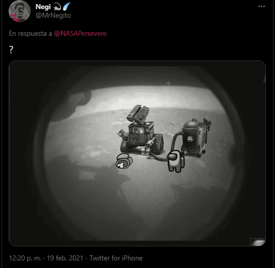 Tras el exitoso aterrizaje del Perseverance en el planeta Marte y la difusión de sus primeras fotografías de la superficie planetaria, los internautas no desaprovecharon la oportunidad para celebrar el hallazgo de la NASA con memes.Las imágenes editadas por los fanáticos del espacio fueron compartidas en redes sociales, donde intentaron jugar con lo que el rover se encontraría en Marte: tiendas, personajes espaciales como “Wall-E” y “Among Us”, por mencionar algunos. El aterrizaje del robot de la Nasa Perseverance en el planeta Marte provocó un alud de mensajes en Twitter, según los datos recopilados el viernes por una plataforma que monitorea internet y las redes sociales, Visibrain."Más de 1.5 millones de mensajes fueron publicados en Twitter" en las últimas 24 horas acerca de esta arriesgada operación espacial, indicó Visibrain, que llegó a detectar 53 tuits por segundo durante las cinco horas que duró la maniobra.Según Visibrain es la primera vez que un acontecimiento de este tipo genera tanto tránsito en Twitter, aunque las cifras quedan lejos de otras noticias, como la invasión del Capitolio estadounidense el 6 de enero, que generó más de 23 millones de tuits en 24 horas (una media de 430 por segundo).El rover Perseverance de la NASA superó con éxito el peligroso descenso en el escarpado cráter Jezero tras un recorrido de unos 470 millones de kilómetros desde su partida en julio de 2020, en Cabo Cañaveral (Florida).“Es tan surrealista”, dijo uno de los científicos del Laboratorio de Propulsión de la NASA, en California, durante la transmisión de la hazaña, mientras todos aplaudían.“Perseverance está viva en la superficie de Marte”, señalo la NASA tras tocar suelo marciano ayer por la tarde.El robot, el quinto de la NASA en Marte después de Sojourner, Spirit, Opportunity y Curiosity, comenzó a rodar ayer sobre suelo marciano sin problemas con la tarea de buscar vida antigua, tomar muestras, estudiar la geología y clima del planeta rojo y preparar el camino para un viaje tripulado.Con información de AFP.AC