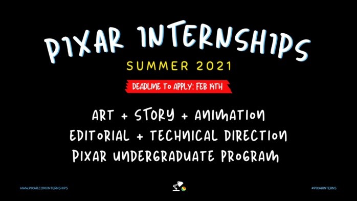 Los Estudios de Animación de Pixar lanzaron una convocatoria dirigida a estudiantes interesados en realizar una pasantía durante el verano de 2021.Pixar dará cursos prácticos de 12 semanas impartidos por sus directores técnicos. En el programa de pregrado (PUP) los estudiantes explorarán opciones de carreras técnicas mientras aprenden sobre el proceso de realización de películas de Pixar.En su página web el estudio detalla: "Nuestro plan de estudios se centra en los aspectos técnicos de nuestra producción de películas animadas, incluido el modelado, el sombreado, el aparejo, la iluminación, la simulación y los efectos con un área diferente cubierta cada semana. Trabajarás en proyectos individuales y grupales para reforzar las conferencias, conceptos y presentaciones de nuestros directores técnicos".La convocatoria para entrar al programa estará abierta hasta el domingo 14 de febrero de 2021. Debido a la pandemia de coronavirus, aún no definen si será presencial o virtual. Eso lo determinarán en la primavera.Las pasantías están dirigida a estudiantes de segundo o tercer año inscritos en licenciaturas de informática, gráficos por computadora, arte digital, arte o un campo relacionado. Es necesario tener el derecho legal a trabajar en Estados Unidos.Los interesados pueden postúlarse en el enlace:https://pixar.wd5.myworkdayjobs.com/en-US/Pixar_External_Internships/job/Emeryville/Pixar-Undergraduate-Program--PUP----Summer-2021_R-02644NR