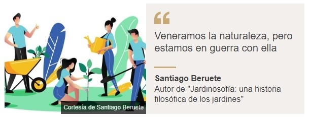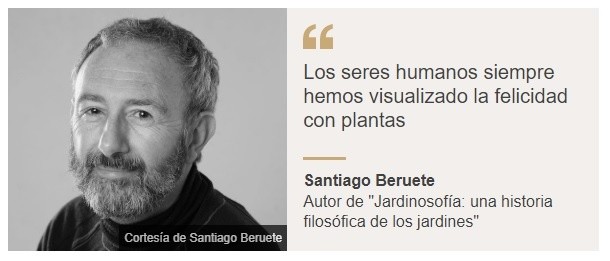 Ya lo decía el filósofo inglés Francis Bacon: quizá la única manera de controlar la naturaleza sea obedeciéndola.¿Pero por qué tenemos tanto interés en dominarla? ¿Y cómo nos afecta esa relación de poder, qué dice sobre nosotros y sobre la búsqueda de la felicidad?El antropólogo y filósofo español Santiago Beruete (Pamplona, 1961) lleva años haciéndose esas preguntas, muchas veces mientras cultiva su jardín. La respuesta es tan compleja que germinó en una tesis doctoral y dos ensayos filosóficos: "Jardinosofía: una historia filosófica de los jardines" (2016) y "Verdolatría: la naturaleza nos enseña a ser humanos" (2018)."Los seres humanos siempre hemos visualizado la felicidad con plantas", le cuenta a BBC Mundo Beruete quien, además de escribir, trabaja como profesor en un instituto dando clases de sociología y filosofía a adolescentes"Una de las cosas más curiosas es que siempre ajardinamos nuestros sueños. De alguna manera, engalanamos con flores y árboles las ideas de una buena vida. Y el mito fundacional de nuestra civilización en Occidente es el paraíso terrenal, el Jardín del Edén"."En los jardines se respira la utopía. Es la forma que tenemos de visualizar algo intangible, que es la felicidad; una metáfora visible".Beruete recorre en sus ensayos las huellas filosóficas de Epicuro, pasando después por la cultura medieval, el Renacimiento y la Ilustración (Rousseau), hasta nuestros días, sin olvidar a los maestros japoneses de vergeles orientales.Pero ya tenía devoción por las plantas mucho antes de escribir sobre ellas."Era una especie de pasión particular en la que me refugié en un momento muy difícil, cuando mi madre murió", recuerda. "Mis hermanos y yo éramos muy pequeños y pasamos los primeros años en el jardín de la casa de mi abuela. Tal vez por eso identifiqué las plantas y los árboles como una extensión de lo maternal"."Yo lo vivía como una cosa muy privada, nunca imaginé que hablaría públicamente sobre esto", confiesa.Santiago Beruete dice que "cuidar un trozo de tierra es ya una forma de cuidarse a sí mismo" porque cultivar "es la ética del cuidado".Es sabido que el contacto con la naturaleza produce un efecto benéfico, tal y como muchos autores y tradiciones literarias han expresado a lo largo de los siglos.El escritor lo resume así: "Trabajar la tierra nos alivia el desosiego que sentimos muchas veces cuando vamos por la celeridad, por el consumismo, por los ritmos de nuestra sociedad"."Nos hace reencontrarnos con la naturaleza y acercarnos a los ritmos naturales. Nos ayuda a suspender el pensamiento, a vaciar la mente... ¿qué mejor mindfulness que cuidar de un huerto?", se pregunta.La explicación, le dice Beruete a BBC Mundo, reside en que para cultivar un jardín o huerto te tienes que descentrar, tienes que acallar el ego y cultivar la mirada."No puedes ser un buen jardinero encerrado entre los cuatro muros de tu cabeza. Salir al jardín siempre supone entrar en uno mismo"."De algún modo, aprendes a respetar los ritmos de la naturaleza, a obedecer los ciclos de las estaciones", dice el filósofo."Acabas comprendiendo que no puedes podar en cualquier época, que hay un momento para abonar y otro para sembrar o para trasplantar. Es una experiencia de descentrarse y, por otro lado, de ser insignificante y no estar solo. Una lección muy sencilla que cualquier campesino o jardinero recibe"."La 'jardinosofía' es una especie de terapia filosófica", responde Beruete. "Una manera de practicar las viejas aspiraciones de la filosofía de forma práctica: hacer filosofía con las manos".El escritor también dice que es "una forma de practicar la paciencia y otras muchas virtudes asociadas a la plenitud, como la perseverancia, la constancia o la humildad, el esfuerzo o la tenacidad", que nos inducen "a otros tipos de compromisos con la tierra y con la sociedad".Así, cultivar un huerto acaba teniendo una dimensión social y política, sostiene.El sociólogo cuenta que "en nuestras sociedades urbanas estamos siempre muy pendientes de otras cosas que no sean la contemplación de un ser vivo (como las plantas)" y que hacerlo "nos invita a empatizar"."Yo no sé cuál es la fórmula de la felicidad, pero sí sé que estos ingredientes, estos valores implícitos a la tarea de trabajar la tierra, forman parte de la buena vida".El concepto es amplio: puede ser un gran jardín o un huerto, pero también el cuidado de una maceta en tu casa.Aunque asegura que hay una óptica oscura que tiene que ver con la dominación y el poder de la tierra e incluso crueldad, que le parece importante para entender nuestra "relación ambivalente con la naturaleza".En sus ensayos filosóficos, Beruete expone la "contradictoria relación que tenemos con la naturaleza"."Veneramos la naturaleza, pero estamos en guerra con ella", dice cuando le pregunto por esa contradicción."A quienes vivimos en sociedades avanzadas -o supuestamente avanzadas- nos fascina lo verde, pero participamos activamente en su destrucción. Es una relación ambivalente"."Nosotros sabemos en nuestro interior que no somos dueños del planeta", dice Beruete. "Pero como estamos continuamente consumiendo más recursos de los que disponemos, nos comportamos con una temeridad irracional".Beruete lo resume con estas palabras: "Somos conscientes de que el crecimiento económico no puede ser ilimitado, pero no queremos vivir por debajo de nuestras posibilidades".Para combatirla, propone construir "otra cultura de la biosfera, otra conciencia ética, otra mentalidad", aunque admite que lo encuentra difícil "porque muchas veces nos resistimos a lo que supondría asumir estas lecciones".Sin embargo, cree que las nuevas generaciones reflejan un cambio positivo y apuntan hacia un cambio moral en el que la educación es "la palanca"."Las nuevas generaciones empiezan a ser cada vez más conscientes de que les va a tocar pagar los excesos y la mala gestión de las generaciones anter