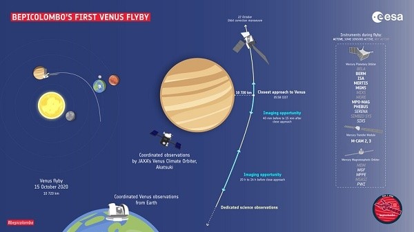 La nave espacial BepiColombo, que se dirige a Mercurio, pasó por Venus el jueves, utilizando el vecino de la Tierra para ajustar su trayectoria hacia el planeta más pequeño y cercano al Sol.Lanzada hace casi dos años, la sonda europeo-japonesa tomó una foto de Venus en blanco y negro desde 17 mil kilómetros de distancia. Algunos de sus propios instrumentos aparecieron en la imagen.Este paso es el segundo de nueve asistencias de gravedad planetaria que necesita la sonda en su viaje de siete años a Mercurio. El primero, alrededor de la Tierra, tuvo lugar en abril.La Agencia Espacial Europea ha dicho que esta misión de mil 300 millones de euros (mil 500 MDD) es la más difícil de las suyas hasta el momento. Las temperaturas extremas de Mercurio, la intensa atracción gravitatoria del Sol y la candente radiación solar generan condiciones infernales.BepiColombo realizará un paso más por Venus y seis por Mercurio mismo para desacelerar antes de su arribo en 2025. Allí se dividirá en dos: lanzará una sonda orbital europea apodada Bepi que ingresará a la órbita interior de Mercurio, mientras que Mio, construida por la Agencia de Exploración Aeroespacial de Japón, recogerá datos desde una distancia mayor.Las sondas están diseñadas para soportar temperaturas desde 430 grados centígrados en la cara frente al Sol y -180 grados centígrados en la sombra de Mercurio.Los investigadores esperan conocer más sobre Mercurio, que es apenas más grande que la Luna terrestre y tiene un núcleo de hierro macizo.La última nave que llegó a Mercurio fue la Messenger de la NASA, que finalizó su misión en 2015 después de cuatro años en órbita. Previamente, la Mariner 10 de la NASA pasó por el planeta a mediados de la década de 1970.AC