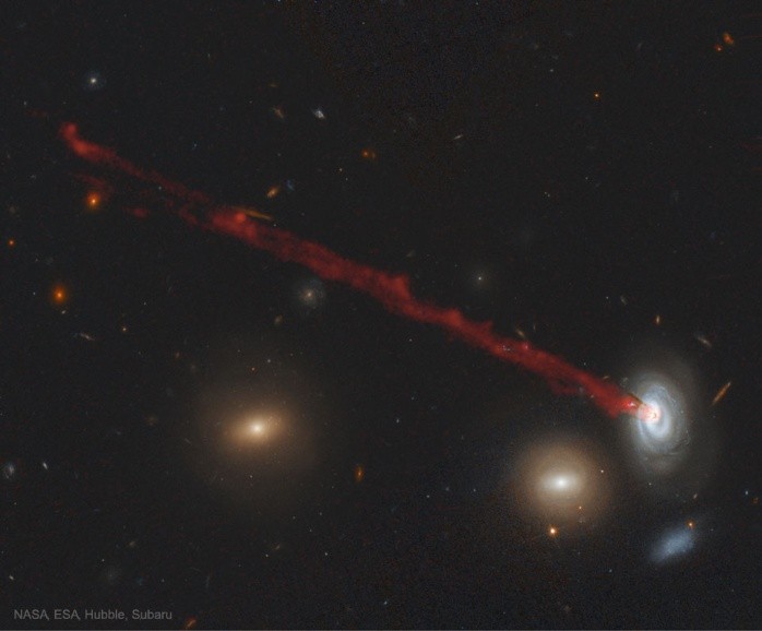 El Telescopio Espacial Hubble de la Administración Nacional de la Aeronáutica y del Espacio (NASA, por sus siglas en inglés) tomó nuevas fotografías que muestran a una galaxia espiral perdiendo su gas conforme se precipita hacia el centro del cúmulo masivo.“Esta galaxia destaca como un ejemplo particularmente extremo de procesos comunes en cúmulos masivos, donde pasa de ser una espiral saludable llena de formación de estrellas, a una galaxia roja y muerta”, dijo William Cramer, de la Universidad de Yale en New Haven, Connecticut, líder del equipo.La explica que la pérdida del gas de D100 es debido al tirón gravitacional de una agrupación de galaxias gigantes denominadas “bully”.El proceso de extracción de gas, señala la agencia espacial estadunidense, inició hace 300 millones de años. En el cúmulo masivo de Coma, este proceso violento de pérdida de gas ocurre en muchas galaxias.“Los brazos espirales desaparecen, y la galaxia se queda sin gas y únicamente con estrellas viejas. Este fenómeno se conoce desde hace varias décadas, pero el Hubble proporciona la mejor imagen de galaxias en proceso”, señaló.Sin embargo, D100 es única y entre sus características se encuentran una cola larga y delgada que se extiende a casi 200 mil años luz. Pero la estructura en forma de lápiz es estrecha, con solo 7 mil años luz de ancho.AC