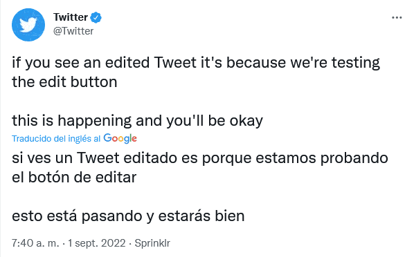 Los tuits ya publicados con faltas de ortografía podrían ser pronto algo del pasado.Twitter anunció hoy que está trabajando para permitirles a los usuarios editar sus tuits, algo que dijo es una de las funciones más solicitadas.La compañía de redes sociales avisó en un blog que está probando internamente el botón de la función "Edit Tweet" con planes de lanzarla este mes a los subscriptores de su servicio Twitter Blue.La función les daría a los usuarios 30 minutos para realizar cambios tales como corregir palabras o añadir hashtags después de publicar un tuit.Para dejar claro que un tuit ha sido modificado, se le añadirá una etiqueta y aparecerá con un ícono y una marca de hora. Los usuarios pueden ver las versiones previas del tuit tocando la etiqueta.Twitter dijo que está probando la función con un grupo pequeño de usuarios para poder identificar y resolver problemas potenciales."Eso incluye cómo la gente pudiera usar mal la función", dijo la empresa en su mensaje. "Nunca se puede ser demasiado cuidadoso".El límite de tiempo y la historia de versiones tienen un papel importante, afirmó Twitter."Eso ayuda a proteger la integridad de la conversación y a crear un historial accesible públicamente de lo que se dijo".OF
