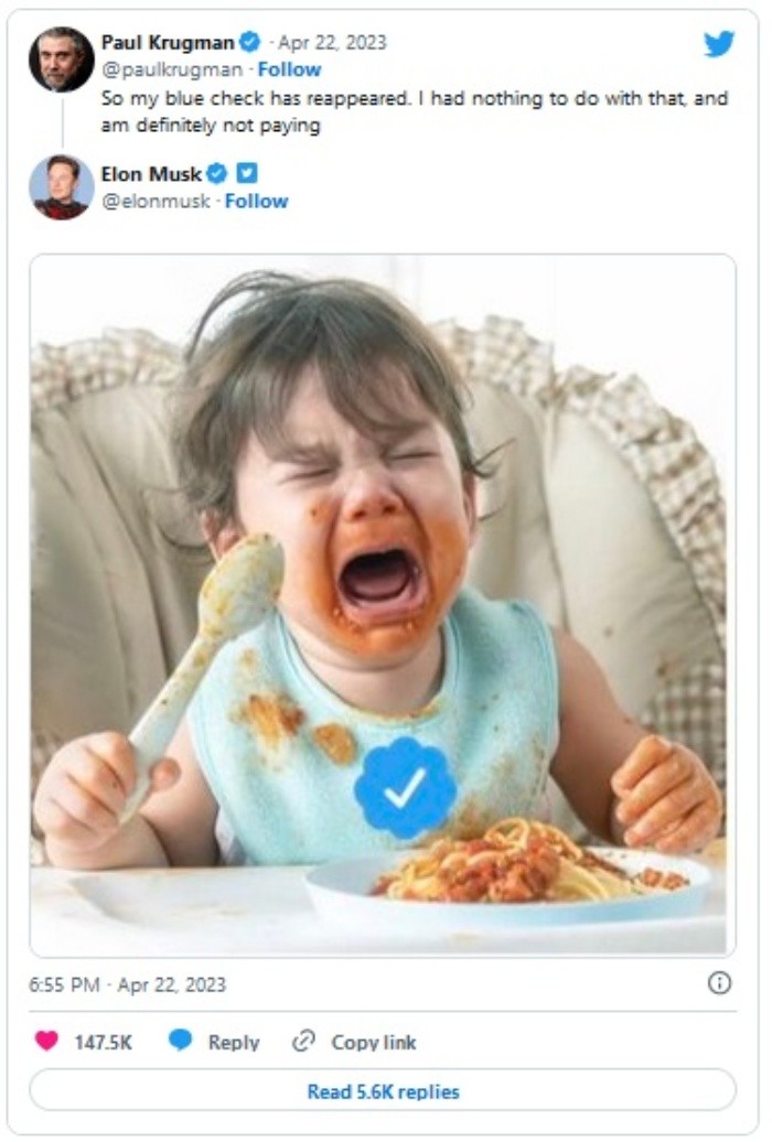 Numerosas cuentas de Twitter de personalidades, empresas y medios de comunicación han recuperado en las últimas horas la marca de verificación azul que habían perdido esta semana tras la decisión de Elon Musk de limitar ese distintivo a los abonados al servicio de pago Twitter Blue.Aunque la red social no ha hecho ningún anuncio al respecto, este domingo muchas cuentas con gran seguimiento -aparentemente aquellas con más de un millón de seguidores- volvían a lucir la insignia azul, que hasta hace poco distinguía a usuarios notables cuya identidad había sido verificada.Al pulsar en la marca, el mensaje que aparece es el mismo que en el caso de los usuarios que han optado por pagar los ocho dólares al mes que cuesta el servicio y señala que la cuenta en cuestión está suscrita a Twitter Blue y ha facilitado un número de teléfono.Varias personalidades de distintos ámbitos han publicado mensajes al respecto, dejando claro que ni habían pagado por Twitter Blue ni dado su teléfono y que, tras perder la marca azul, ésta había vuelto a aparecer sin más explicación."A pesar de la implicación cuando se hace clic en la insignia azul que misteriosamente ha reaparecido junto a mi nombre, yo no estoy pagando por el 'honor'", tuiteó el actor Ian McKellen."Mi marca azul ha reaparecido. No tengo nada que ver con eso y definitivamente no estoy pagando", señaló el nobel de Economía Paul Krugman, a quien el propio Musk respondió con un fotomontaje de un niño pequeño llorando y con una insignia de verificado.Este domingo, la insignia azul parecía haber vuelto a muchos usuarios con más de un millón de seguidores que la habían perdido, incluidas las cuentas inactivas de varios famosos fallecidos, como el jugador de baloncesto Koby Bryant o el chef y presentador Anthony Bourdain.Cuentas de medios de comunicación como la cadena Fox News o las agencias Reuters, AP, AFP o EFE, que se habían quedado sin el distintivo azul, volvían a contar con él este domingo.Mientras, CNN, MSNBC o The New York Times -algunos de los mayores medios a menudo catalogados como progresistas en Estados Unidos y que han sido blanco de críticas de Musk- lucían la marca dorada que identifica a empresas que han pagado por su verificación en Twitter, un servicio que cuesta mil dólares mensuales, a pesar de que habían adelantado que no iban a hacerlo.Los repentinos cambios aplicados por la red social llegan después de que un porcentaje minúsculo de usuarios que habían sido verificados anteriormente optasen por abonarse a Twitter Blue para conservar la marca azul.JM