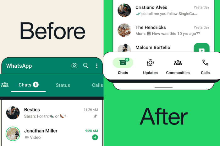 Hace poco tiempo, WhatsApp introdujo ajustes discretos en su plataforma. Con el tiempo, estas modificaciones se han ido implementando gradualmente, y ahora el nuevo diseño es una realidad palpable. Si utilizas un dispositivo Android, es probable que ya te hayas percatado de estos cambios.Primero se movieron de lugar los estados, luego el menú inferior y se incorporaron los mensajes con videos instantáneos, pero esos no son todos. A continuación te contamos detalle a detalle cuáles son las novedades de la app.Mucho más dinámico y minimalista, el nuevo diseño de WhatsApp está provocando reacciones a favor y en contra. Uno de sus principales cambios es el lugar de la barra de navegación.Con dicha mejora, busca lucir semejante la versión de iOS. Anteriormente, no se podía deslizar para cambiar entre las pestañas "Chats", "Novedades", "Comunidades" y "Llamadas", cosa que ya es posible.De acuerdo con el Centro de Ayuda de WhatsApp, la aplicación también estará modificando su apariencia. Así que disfrutaremos un diseño más amigable y cómodo en el que se incluyen:No te asustes si aún no cuentas con las actualizaciones. De momento, quienes pueden disfrutarlas son los usuarios inscritos al programa beta TestFlight y aquellos que tienen Android 2.24.4.3.Meta recomienda actualizar WhatsApp constantemente en Android, lo que facilitará recibir las novedades. Si no sabes cómo realizar este proceso, te dejamos la guía del Centro de Ayuda:Otra opción consiste en activar las actualizaciones automáticas, así no tendrás que realizar el proceso de manera manual.YC