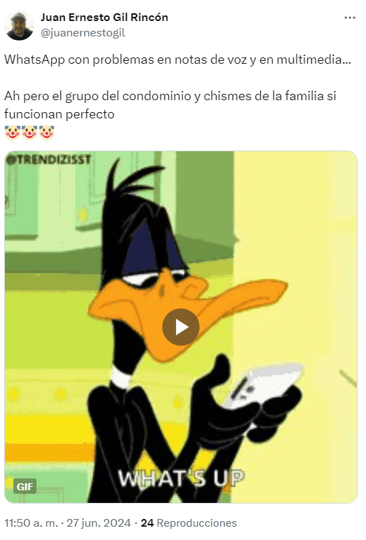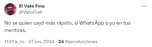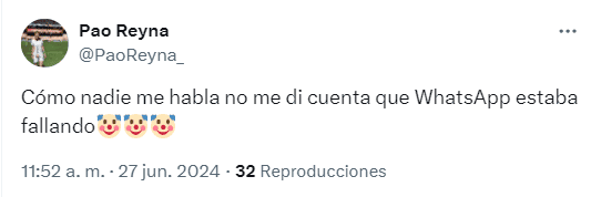 En redes sociales, usuarios de la aplicación de mensajería WhatsApp reportan que está fallando este jueves 27 de junio.Desde hace alrededor de dos horas, señalan que hay problemas en la app para cargar fotos, enviar mensajes, así como en los audios.El portal Downdetector indica que la falla ha estado desde las 09:25 de la mañana, mientras que entre las 10:25 y las 10:55 se presentaron más intermitencias.*Mantente al día con las noticias, únete a nuestro canal de WhatsApp OF