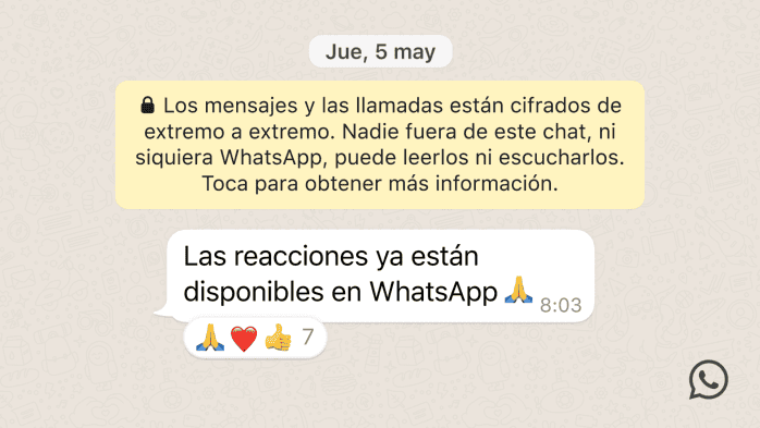 Desde hace unos días, WhatsApp comenzó a probar nuevas actualizaciones para sus usuarios de la aplicación y, desde entonces, las funciones han estado disponible poco a poco. Entre estas nuevas herramientas se encuentran las reacciones en los chats. Aquí te contamos los detalles.Se trata de una última actualización de WhatsApp y WhatsApp Web que incluye los emojis que ya conocemos en la red social Facebook, con estados de ánimo como el “Me gusta”, “Me encanta”, “Me divierte”, “Me asombra”, “Me entristece” y “Por favor”.“Los comentarios que recibimos hasta ahora han sido muy positivos y estamos deseando que esas nuevas funciones lleguen a nuestros usuarios”, dijo la compañía en un comunicado.WhatsApp detalló que estas divertidas reacciones con emojis se pueden usar de una forma muy simple, pues basta con seleccionar el comentario del otro usuario —o también del propio— y seleccionar el emoji que identifique tu estado de ánimo por el mensaje. Este funciona dentro de chats individuales y en grupos, cuya finalidad también es reducir la sobrecarga de mensajes en éstos, según informó WhatsApp.Además, con esta nueva actualización, la aplicación de WhatsApp permite enviar archivos de hasta 2 GB de peso en un solo envío, aún con la protección de datos de cifrado de extremo a extremo. Anteriormente, la red social sólo permitía envíar hasta 100 MB.“Creemos que será de gran ayuda para mejorar la colaboración entre pequeñas empresas y grupos escolares”, detalló.WhatsApp recomendó utilizar la red WiFi para enviar esta cantidad de archivos para asegurar que no exista problema alguno. También, añadió un contador que permite monitorear la descarga y subida de archivos a los chats, para saber cuánto falta para que termine y puedas estar tranquilo por tus archivos.Finalmente, WhatsApp anunció que está preparando nuevas funciones que permitirán añadir hasta 512 personas a un grupo, todas con las mismas herramientas de seguridad, privacidad y protección. “Creemos que esta serie de mejoras ayudará a los usuarios y a los grupos a mantenerse unidos entre sí”, finalizó.Si aún no cuentas con estas funciones de WhatsApp podría ser porque tu aplicación aún no se actualiza a la última versión; para corregir esto, puedes ir a la tienda de aplicaciones, buscar WhatsApp y actualizarla.AC