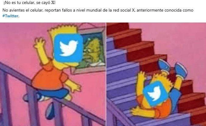 Hoy lunes 10 de marzo, la plataforma X (antes Twitter), presenta fallas en diversos países. Los usuarios de redes sociales reportan que no carga de manera correcta. La información es respaldada por el portal Downdetector, el cual indica que X no carga en la página web, marca error de servidor, y tampoco funciona la aplicación.Los problemas, según los usuarios, comenzaron alrededor de la medianoche, agravándose cerca de las cuatro de la mañana, y presentando un pico de fallas entre las 07:30 y 08:15 horas.Hasta el momento, ningún encargado de la plataforma X ha salido para informar alguna razón detrás de los errores.En este momento, en el corte de las 10:00 horas del 10 de marzo, los problemas reportados, según Downdetector son 60% de usuarios dicen que la red social no carga; el 28% informa que no sirve la app; y el 13% se queja por error en la conexión del servidor.Entre las quejas que realizaron los usuarios de X en otras redes sociales, aparecieron cientos de memes, los cuales no faltan para este tipo de situaciones. X es propiedad del magnate sudafricano Elon Musk desde octubre de 2022, y tras la compra, el empresario decidió renombrarla como X a partir de abril de 2023.*Mantente al día con las noticias, únete a nuestro canal de WhatsAppOF