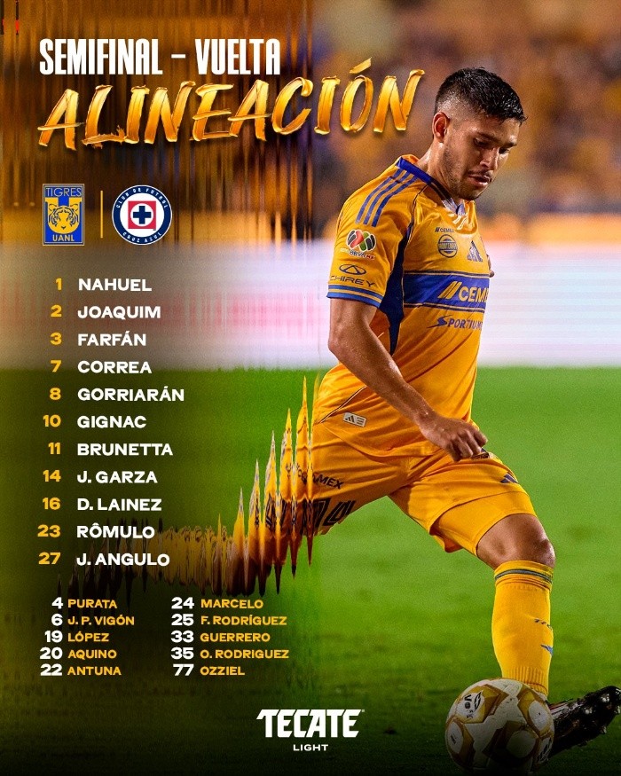 Deportes | Tigres vs Cruz Azul • Momentos Destacados • Semifinal Vuelta • Apertura 2025 Ambos equipos se enfrentan este sábado en un duelo decisivo que definirá al finalista del Apertura 2025 en la Liga MX Sergio Alejandro Velázquez 6 de diciembre de 2025 - 19:30 hs TIGRES1 ‒ 1CRUZ AZUL Finaliza el partido El partido culminó 1-1, dejando un global de 2-2 que no fue suficiente para Cruz Azul. Tigres pegó primero con el gol de Juan Brunetta en el primer tiempo, aprovechando una asistencia quirúrgica de Gignac en la jugada más clara de la primera mitad. La Máquina respondió con aproximaciones de Sepúlveda, Rotondi y Gabriel Fernández, pero entre la falta de contundencia y las intervenciones de Nahuel Guzmán, el empate no llegaba. En el complemento, el juego se volvió más trabado, con Tigres administrando la posesión y Cruz Azul intentando presionar sin demasiado orden. El momento clave llegó al 68’, cuando el VAR sancionó un penalti a favor de los celestes, pero Gabriel Fernández falló su disparo ante un arquero que sostuvo la ventaja de los felinos. En el tramo final, Cruz Azul jugó con uno menos tras la lesión de Jesús Orozco, justo cuando ya había agotado sus cambios. Aun así, logró igualar en una jugada fortuita que terminó en autogol de Juan Purata. Ese 1-1 encendió el cierre, pero el tiempo no alcanzó para la remontada. Con el empate en el global, la regla de desempate por posición en la tabla favoreció a Tigres, que avanzó a la Final del Apertura 2025 tras un duelo intenso, disputado y marcado por detalles que inclinaron la balanza. 90+5' ¡Goooooool de Cruz Azul! ¡Autogol de Tigres! Juan Purata desvía accidentalmente el balón hacia su propio arco y termina igualando el marcador en la recta final. Cruz Azul encuentra el empate en una jugada llena de presión dentro del área. 87' Dura lesión en Cruz Azul Cruz Azul sufrió un contratiempo en la recta final: Jesús Orozco Chiquete quedó tendido y el juego se detuvo para su atención. Sin cambios disponibles, el defensor abandonó el campo por lesión. Tras ajustarse las líneas, el partido se reanudó con la Máquina obligada a cerrar el encuentro en inferioridad numérica. ¡Imágenes sensibles! Chiquete orozco sufre aparatosa lesión y debe salir de emergencia pic.twitter.com/rfrKA36HHX — TUDN MEX (@TUDNMEX) December 7, 2025 72' ¡Nahuel rechaza el penal! ¡Penalti fallado! Gabriel Fernández desaprovecha la oportunidad del empate: su disparo raso con la derecha es adivinado y detenido por Nahuel Guzmán, que sostiene la ventaja de Tigres en un momento crucial del partido. ¡¡NAHUEL GUZMÁN ATAJA EL PENAL!! Cruz Azul desperdicia la oportunidad y Nahuel Guzmán se convierte en el héroe. pic.twitter.com/x7NuPbWt9c — TUDN MEX (@TUDNMEX) December 7, 2025 70' Penal en favor de Cruz Azul El partido entra en tensión máxima. Tras una dura caída de Gabriel Fernández dentro del área, el árbitro detuvo las acciones al minuto 68. La jugada fue revisada en el VAR y, después de la confirmación, se decretó penalti a favor de Cruz Azul por una falta de Rômulo. Con la decisión tomada, el duelo se reanuda a la espera de la ejecución desde los once pasos. 65' Tigres retoma la presión sobre el área celeste Fuera de juego para Tigres. Juan Purata buscó el desmarque profundo con un pase filtrado, pero Brunetta partió en posición adelantada y la acción quedó invalidada. 54' Las acciones se concentran en el mediocampo Cruz Azul no consigue ejercer la presión necesaria para buscar el empate, mientras Tigres ha iniciado el segundo tiempo con dominio de la posesión. Sin embargo, el juego se ha trabado en el mediocampo, donde ambos equipos libran una batalla constante por el control del balón. Comienza el segundo tiempo Finaliza la primera mitad Tigres se marcha al descanso con la ventaja gracias al gol de Juan Brunetta, culminando una jugada filtrada por Gignac en el momento de mayor claridad auriazul. El partido ha sido intenso y parejo: Cruz Azul generó ocasiones con Sepúlveda, Rotondi y Gabriel Fernández, pero se encontró con un Nahuel Guzmán seguro y algunos disparos desviados. Tigres, por su parte, supo golpear en transición y también amenazó con Correa y Gorriarán. 39' Cruz Azul busca el empate Cruz Azul responde con decisión en busca del empate. Carlos Rotondi conecta un derechazo dentro del área por el costado izquierdo, pero la defensa desvía su intento tras el centro de Gonzalo Piovi. En la continuación de la jugada, Gabriel Fernández gana por arriba y mete un cabezazo potente hacia la escuadra izquierda, pero el arquero reacciona a tiempo para contener. 27' ¡Tigres abre el marcador! ¡Gol de Tigres! Juan Brunetta culmina la jugada con un remate raso de derecha desde el centro del área, ajustado al poste izquierdo. La acción nació de una habilitación de André-Pierre Gignac, quien filtró el balón con precisión para dejarlo de frente al arco. ¡¡GOOOL DE TIGRES!! Golazo de Brunetta para abrir el marcador en el Volcán pic.twitter.com/lRvfMeGZ6o — TUDN MEX (@TUDNMEX) December 7, 2025 20' Ambos equipos continúan intentando Tigres vuelve a tocar la puerta: Juan Brunetta llega de frente al arco y saca un zurdazo dentro del área que pasa muy cerca del poste izquierdo, tras una transición conducida por Ángel Correa. En la réplica celeste, Ignacio Rivero prueba desde más de 30 metros con un derechazo potente, pero el balón se abre y termina por el costado derecho. 12' La Máquina vuelve a intentar Ángel Sepúlveda conecta un cabezazo a ras de césped desde el corazón del área, pero Nahuel Guzmán controla sin sobresaltos. La jugada nació de un centro de Lorenzo Faravelli. 6' Tigres toma la presión ofensiva Tigres responde adueñándose de la posesión y avanzando líneas. Ángel Correa conecta un derechazo dentro del área por el sector izquierdo, pero la zaga rechaza su intento tras el servicio de cabeza de Juan Brunetta. Instantes después, Fernan
